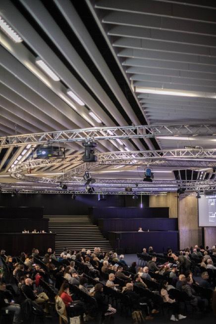 Giambattista then thanked the Mayor, Deputy Mayor and the city. He also thanked the European Union for giving the EJN a grant as part of the Creative Europe programme. He then thanked the invaluable work of the EJN staff, Francesca and Stefano, as well as the Board of Directors of the EJN, and the members of the EJN. He noted that without the members of the EJN, there is no network at all. He then invited the MCs for the day to the stage, Maria Rylander (Knutpunkt, SE) & Fernando Sousa (Casa da Musica, PT). They each introduced themselves before welcoming the key note speaker Alicja for her keynote speech.