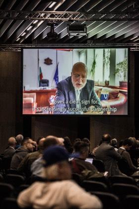A short video was shown by the Ministry of Culture Prof. Velislav Minekov who unfortunately couldn’t be present, but he sent his greetings and best wishes for the conference, ending the video with a quote by jazz legend Herbie Hancock. The Deputy Mayor of Sofia Miroslav Borshosh was then invited onto the stage to say a few words. He asked everyone to once again, applaud Peter and Mila for their organisation of the conference. He stated emphatically that they, in Sofia, really love jazz. He hoped delegates will leave Sofia with warm memories, not only with what will be achieved during the conference, but also a warm memory of Bulgarian hospitality, and that they get a chance to discover the soul of South Eastern Europe. He stated that the city of Sofia has given increasing support to jazz music during the past 10 years, and will continue to do so because they strongly believe that music is that eternal bridge between humans, and that jazz is the music of free will. He ended his greeting by wishing everyone a beautiful experience in the city, at the conference and in the contacts that are made; and hoped that everyone will remember Sofia as a strong friend of jazz.