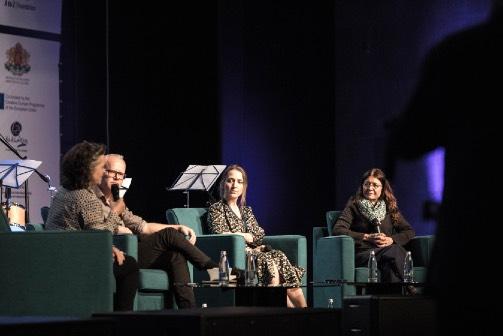 Giambattista then thanked the Bulgarian organisers of the conference Peter Dimitrov and Mila Georgieva from A to Z Foundation for all their hard work, and invited them up onto the stage to say a few words. Mila welcomed everyone and said that organising for this conference actually began four years ago in 2018, and that they are excited to finally have everyone here in Sofia. She noted that it has been four years of struggle, excitement, cancellation and then starting over, but that they finally did it. She highlighted how important it was to have the conference here because it is the first professional music forum that has been hosted in Sofia. Mila hoped that it was only the beginning, especially since for the majority of delegates it was their first time ever in Bulgaria. Peter added that it was a great honour to be the hosts of the conference. He welcomed everyone to beautiful Bulgaria and Sofia, and hoped that everyone will enjoy a city that has a great history and cultural life. He stated that in the next two days the delegates will encounter something new for them, which is Bulgarian music, and he hoped that they will enjoy it. Peter wished everyone a great time and successful conference, and added that this conference could never have happened without the support of the Ministry of Culture, Sofia Municipality and the Ministry of Tourism of Bulgaria.