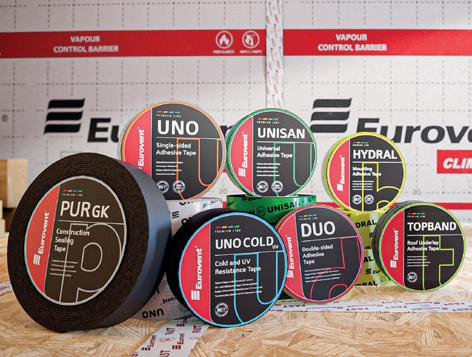A range of certified and tested Eurovent® adhesive tapes. Ideal for sealing, joining, and repairing films, roofing membranes, housewraps, vapour barriers, and other construction materials.