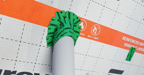 Samoprzylepne kołnierze uszczelniające do izolacji oraz uszczelniania przejść kabli, instalacji solarnych, rur kanalizacyjnych, grzewczych i wentylacyjnych przez membrany i folie paroizolacyjne oraz przez inne przegrody budowlane takie jak ściany, dach, poddasze oraz podłogi.