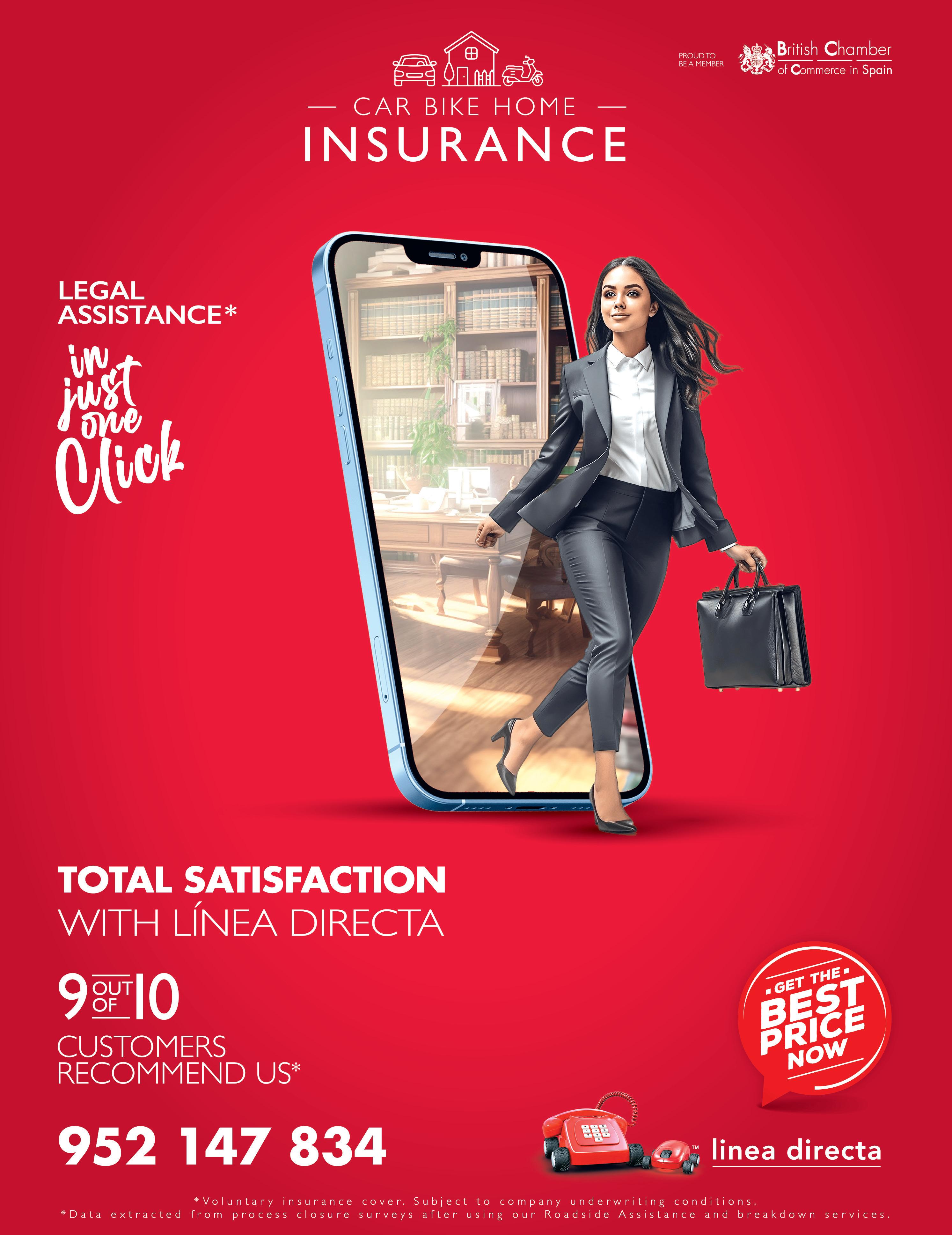 WE ARE currently the market leader in our country in the sale of direct car, motorbike, home and company fleet insurance. Since we started out in 1995, our philosophy has always been to offer an excellent service with the best prices in the market. For the most competitive quotes in English, call Linea Directa on 952 147 834. (200726)