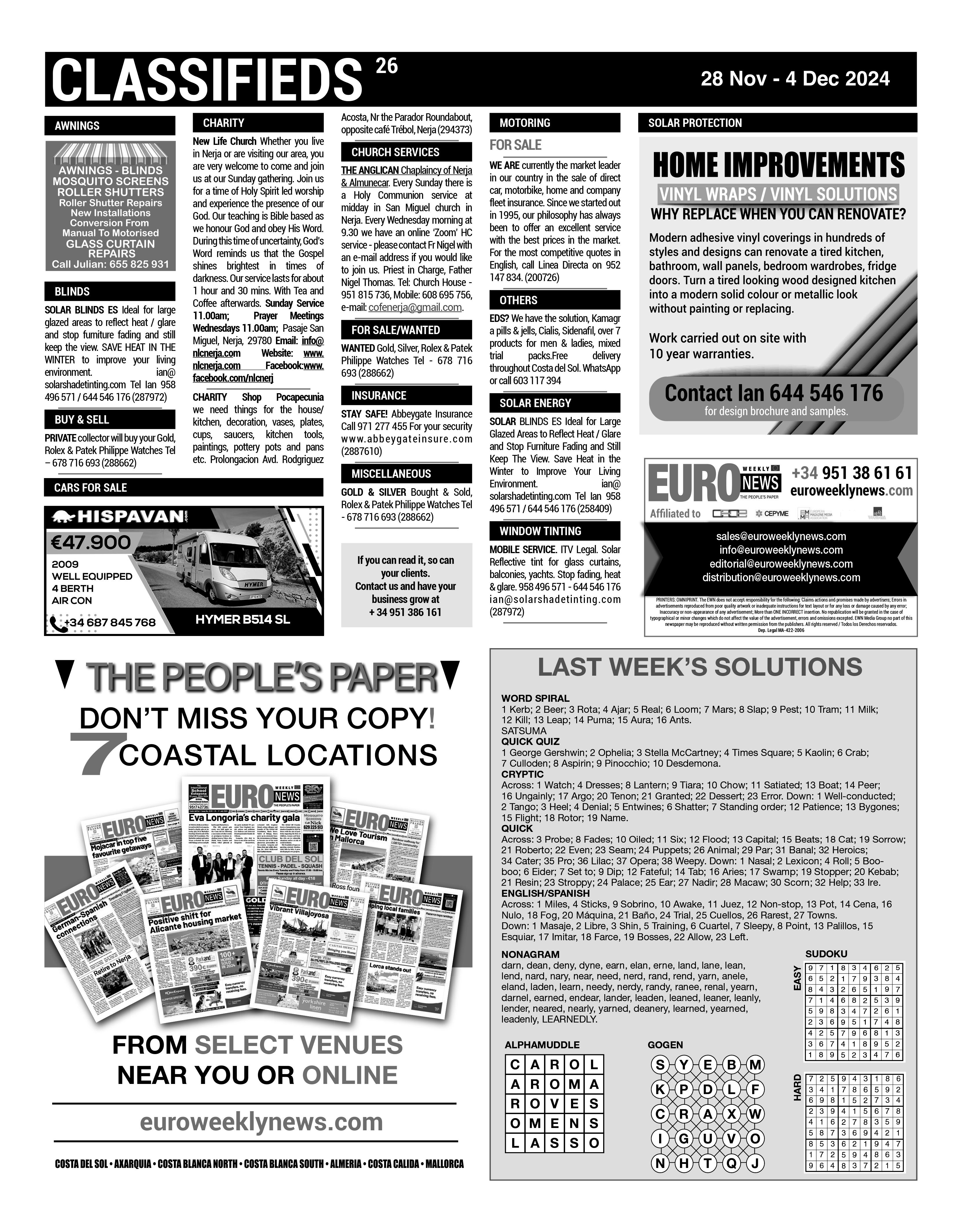 AN exciting new government investment promises to bring a shimmeringly spanking new look to some of Malaga’s beaches - speci cally those on the Axarquía coast. An eye-popping amount will be destined to improve the coastlines of Rincon de la Victoria, Velez-Malaga, Algarrobo, Torrox and Nerja.