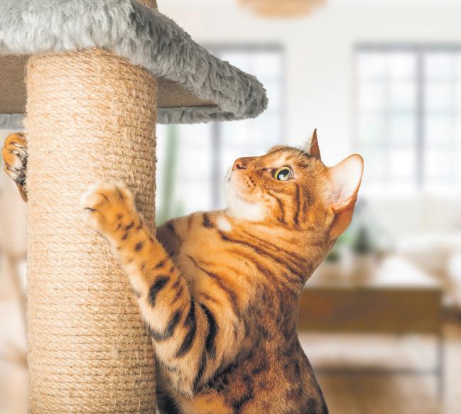 Secure toxic items: Store cleaning supplies, medications, and any plants that are toxic to cats out of reach. Many common houseplants like lilies, ivy, and poinsettias can be harmful if ingested. Protect furniture: Cats love to scratch, so provide scratching posts or pads to redirect their attention away from your furniture. You can also apply double-sided tape on areas you want to deter scratching.