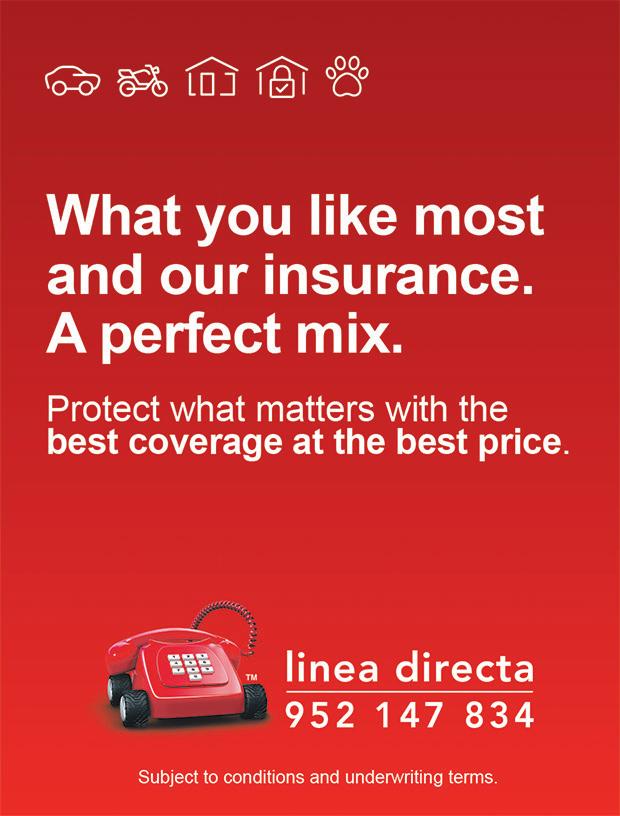 WE ARE currently the market leader in our country in the sale of direct car, motorbike, home and company fleet insurance. Since we started out in 1995, our philosophy has always been to offer an excellent service with the best prices in the market. For the most competitive quotes in English, call Linea Directa on 952 147 834. (200726)