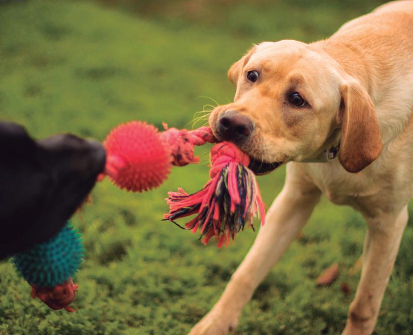 Tug of war is a great physical work-out for you and your dog. It’s also a useful tool for teaching them impulse control as you can train them to ask permission to take the toy, and to let go upon command. Tugof-war lets your dog roughhouse in a controlled environment.