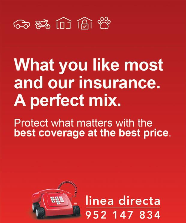 WE ARE currently the market leader in our country in the sale of direct car, motorbike, home and company fleet insurance. Since we started out in 1995, our philosophy has always been to offer an excellent service with the best prices in the market. For the most competitive quotes in English, call Linea Directa on 952 147 834. (200726)