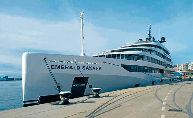 Emerald Sakara docked in Palma early one morning, bringing a touch of boutique glamour to the Balearic capital. Operated by Emerald Cruises, part of the Scenic Group, the 110-metre vessel accommodates 100 guests in 50 luxury suites and staterooms.