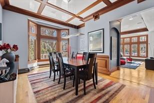 Dining Room: 1 14X11 Flooring-Hardwood,Window(s)-Bay/Bow/Box,MainLevel,Deck-Exterior,ExteriorAccess,RecessedLighting,Remodeled, Lighting-Pendant,CrownMolding,DecorativeMolding,PocketDoor