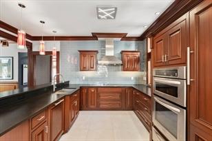 Kitchen: 1 19X14 Closet/Cabinets-CustomBuilt,Flooring-Hardwood,Window(s)-Picture,Pantry,Countertops-Stone/Granite/Solid,CountertopsUpgraded,MainLevel,KitchenIsland,Wetbar,Cabinets-Upgraded,Deck-Exterior,ExteriorAccess,RecessedLighting,Remodeled, SecondDishwasher,StainlessSteelAppliances,Lighting-Pendant,CrownMolding,DecorativeMolding