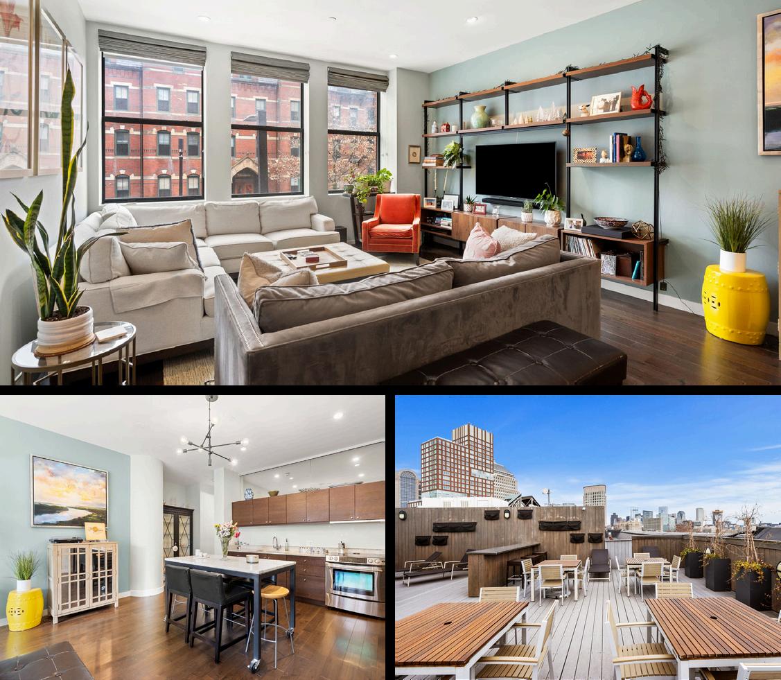This exquisite 2 bed, 2 bath features a spacious open layout that seamlessly blends modern luxury with classic charm. The living area is bathed in natural light thru large skylights and windows that offer picturesque views of the iconic Commonwealth Ave and the Back Bay skyline. The gourmet kitchen boasts high-end appliances, beautiful cabinetry, and ample counter space, perfect for culinary enthusiasts. Retreat to the spacious primary suite, complete with a lavish ensuite bathroom for your comfort and relaxation Step outside to your expansive private roof deck, an entertainer's dream, offering breathtaking views of the city skyline and the serene surroundings. Enjoy alfresco dining or soak up the sun in your own urban oasis. This unit also comes with two deeded tandem parking spaces.