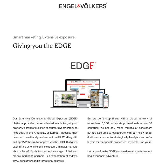 At Engel & Völkers Boston, we embrace our city’s simple ethos work hard, play hard, treat clients like family. Our advisors work each transaction with the same care and diligence as if they were purchasing or selling themselves. We’re not just the most successful in the area, we reflect the Engel & Völkers’ culture of teamwork, passion, and expertise. With state-of-the-art real estate tools and technology, global luxury brand recognition and unrivaled market and marketing dexterity, we deliver concierge class service during your purchase or sale process and beyond. Call on us for your next transaction. Our bold strategies and individual counsel are crafted to impart the information you’ll need to make informed decisions in an increasingly complex real estate marketplace.