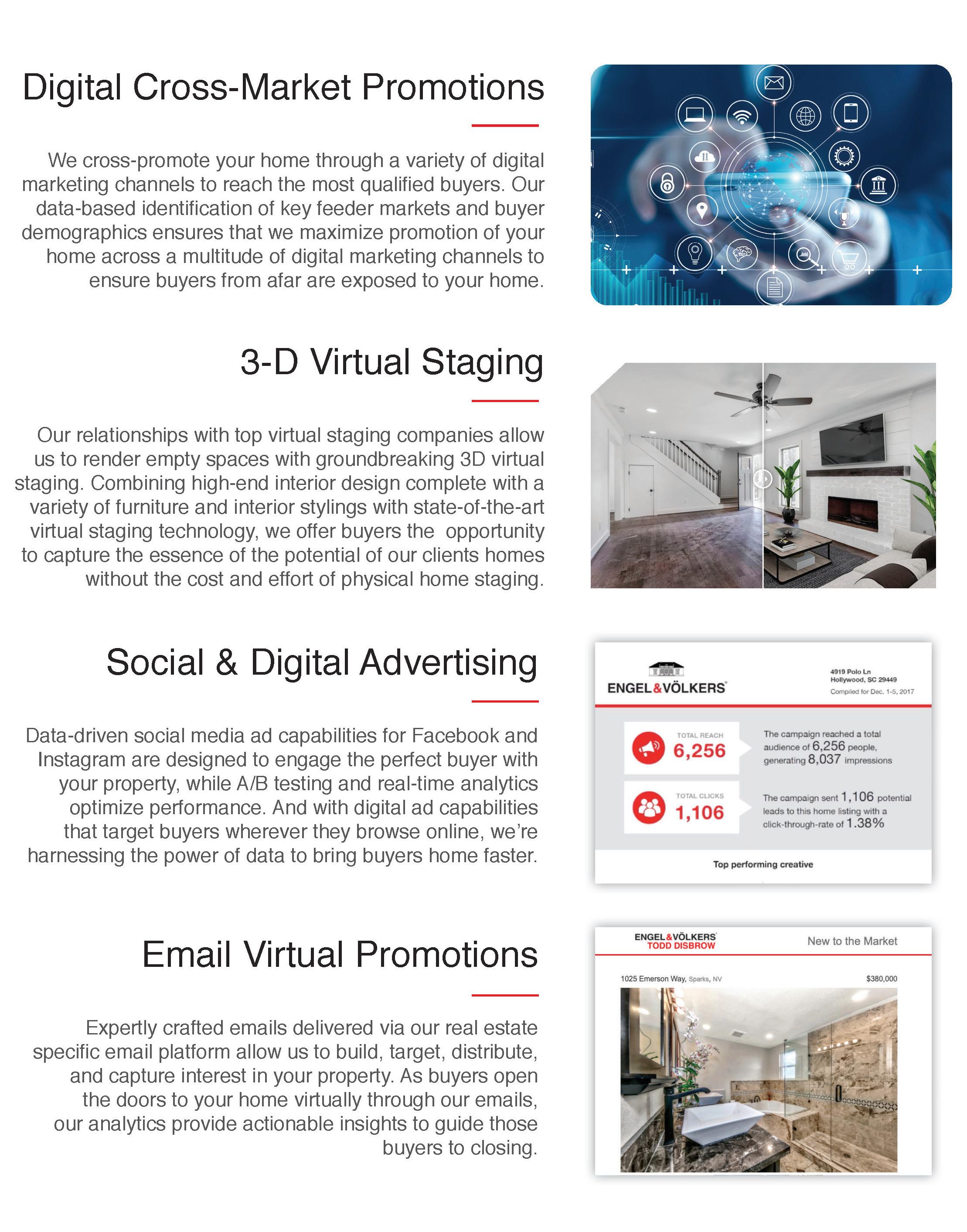 Engel & Völkers marketing strategies and offerings are rooted in data and research for optimal results --- at every level. By identifying the unique qualities of a property and placing it in the context of current and trending market conditions, we then identify target market groups and create campaigns to provide maximum exposure of the property alongside messaging and branding to attract the most qualified buyers. Our creative approach is also backed by consumer data and testing to ensure we highlight your property in the best light.