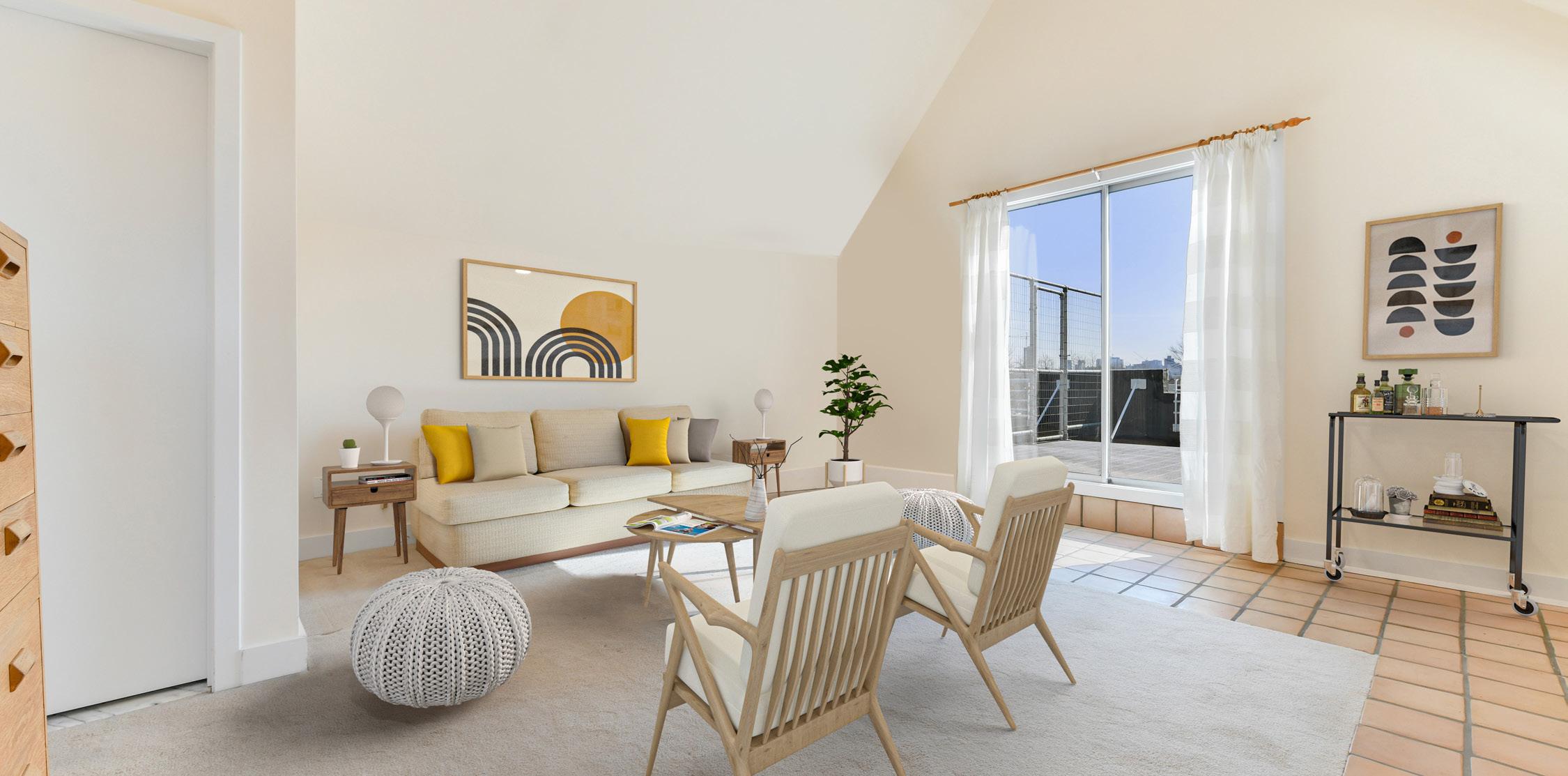 172 Green Street, Unit 5 I Jamaica Plain Urban Loft I 2 Bedrooms I 2 Bathrooms I 1,215sq ft Incredible one-of-a-kind urban loft living space locat ed in a turn of the century carriage factory. This newly renovated 2 bed and 2 full baths offers all the charac teristics of a loft but fully modernized. Tons of natural light with south-facing oversized windows complete with new Shade Store blinds; exposed brick walls and wood beams; and gorgeous wood floors. Open floor plan lends itself to entertaining with a chef’s kitchen equipped with gas cooking, tons of storage, and custom-built granite counter that can serve as a dining area. Spacious primary bedroom and large ensuite bath with double vanity. Enjoy a large second bedroom or home office with brand new guest bath.