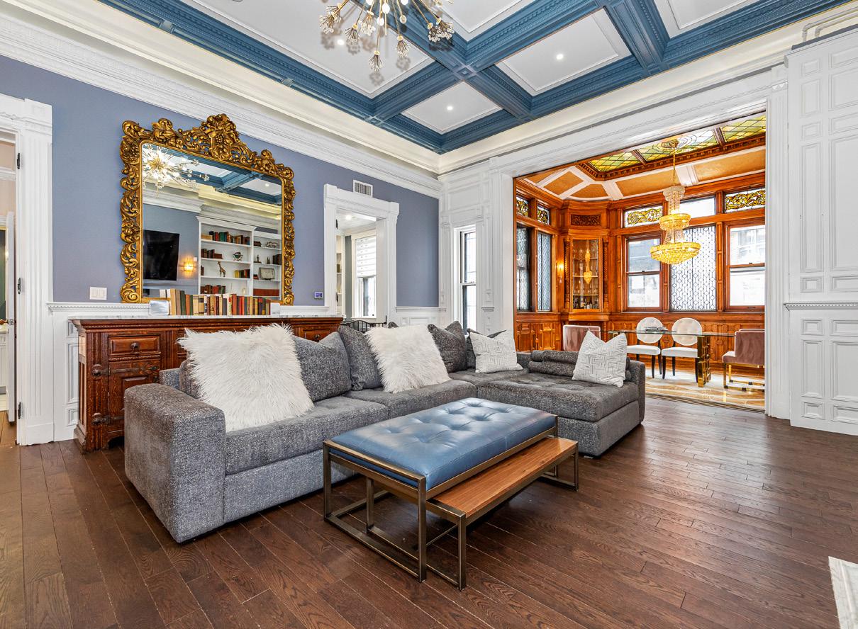 1,500 sq ft Stunning south facing duplex on the River side of Bea con between Berkeley & Clarendon with direct access parking. Grand Beaux Arts brownstone with a majes tic lobby opens directly into elegant living and dining spaces offering views of the Back Bay streetscape through oversized windows. Beautiful designer and vintage finishes complement 12’ ceilings with original plaster moldings, ornate fireplace and inspired custom built-ins. Sleek white cabinetry and premium stainless steel define a contemporary chef’s kitchen. Generous bedrooms with excellent storage and marble baths round out the living spaces.