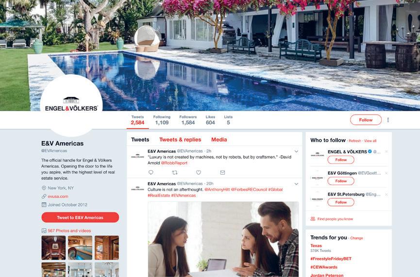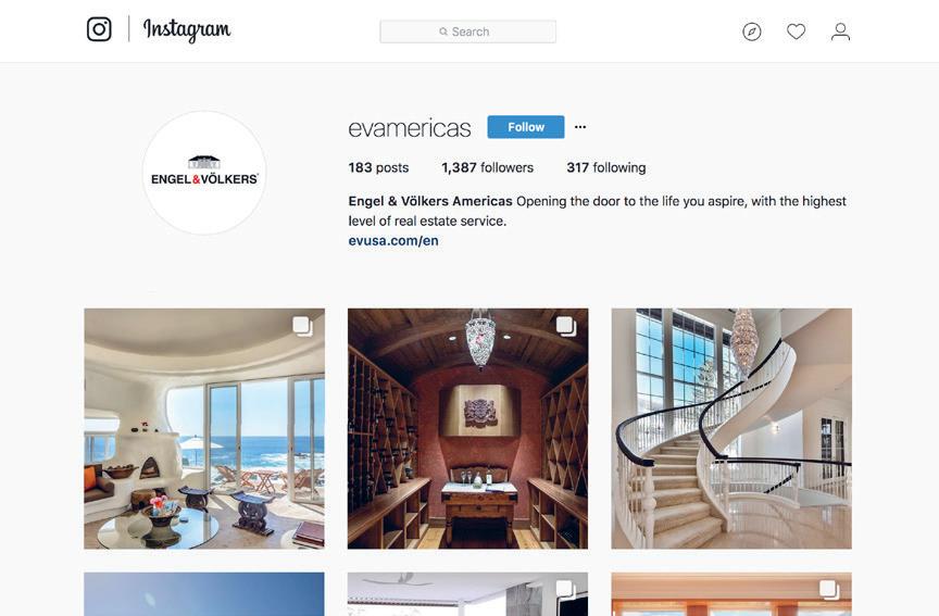 The Engel & Völkers network uses social media to connect with advisors, consumers, and influencers across the globe. The content, news, and listings we share are designed to engage and inform followers, ensuring that our brand, services, and premier properties remain a topic of conversation. Our social media strategy is to be where our clients are and where potential clients want to be, to provide content of value and enjoyment, and to drive traffic to our properties. On a local level, our shop emulates this strategy with a focus on featuring notable listings like yours and to increase their exposure to a targeted sphere of influence.