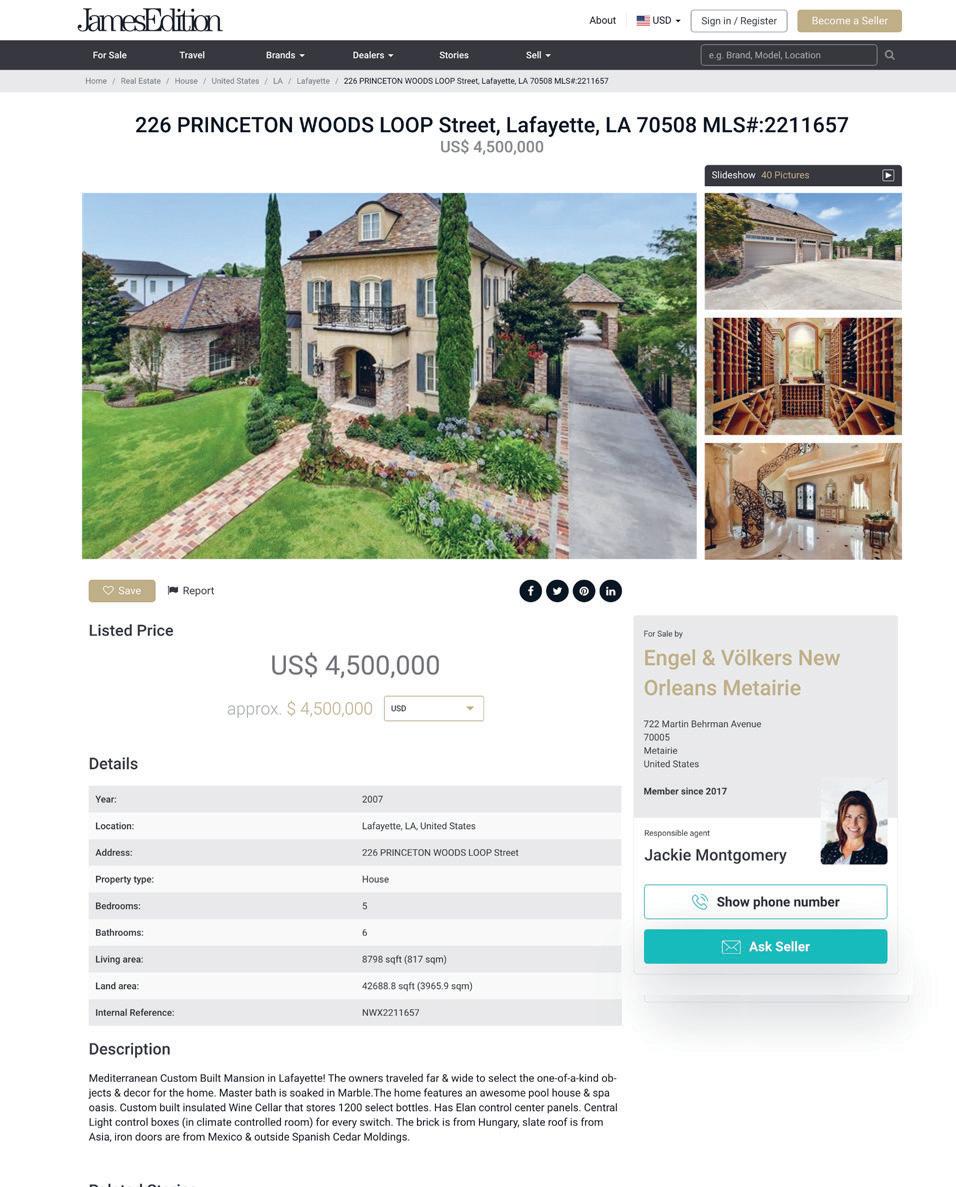JamesEdition is the premium online marketplace where high net worth buyers search worldwide to find extraordinary real estate, yachts, jets, jewelry and accoutrements of a luxurious lifestyle.