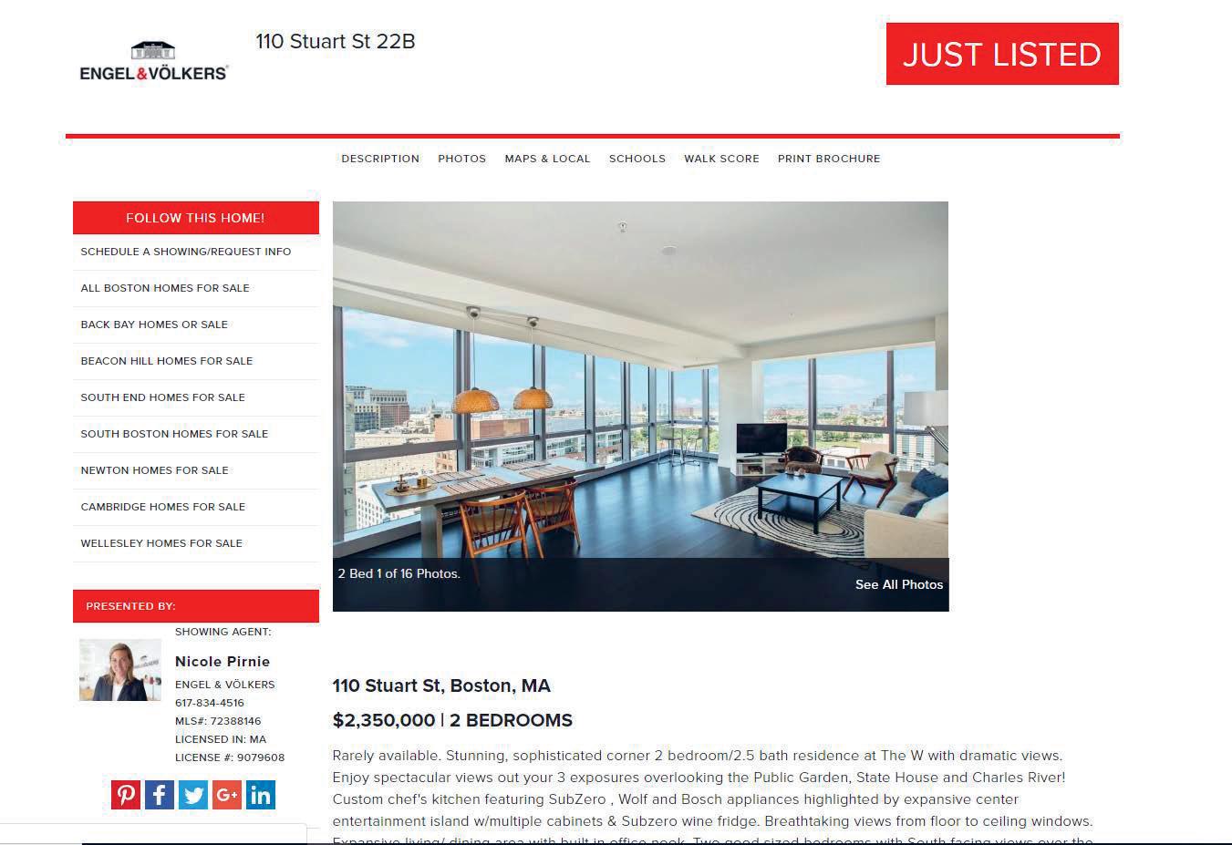 • Engel & Völkers has more than 60 agents in 4 offices in Back Bay, North End/ Waterfront, South Boston/Seaport and Newton Centre.