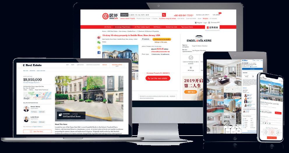Juwai.com, reaching 3.1 million affluent Chinese buyers each month is the largest and most authoritative source for global property data and advanced search designed for the Chinese real estate buyer. It provides a full range of services to get your property listing accurately translated and formatted to market your property in a way that resonates with this demographic behind China’s online firewall — an extremely important element.