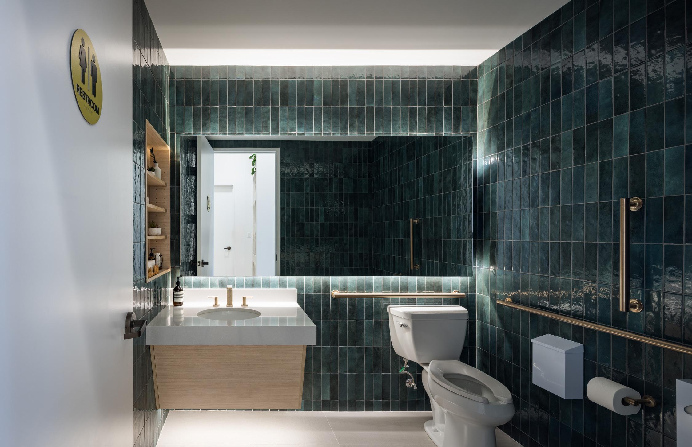 At the heart of the workplace lies a fully functional commercial-grade kitchen—the nucleus for daily chef-prepared meals, impromptu gatherings, and even communal baseball watch parties. Here, work and play converge with intention. Eschewing the traditional reception desk, the entry sequence opens into a residentially inspired lobby, more living room than lobby, fostering an immediate sense of hospitality. The adjacent balcony, accessed directly from the communal kitchen, democratizes the best views in the office—offered equally to staff and guests, underscoring the company’s ethos of shared experience and elevated living.