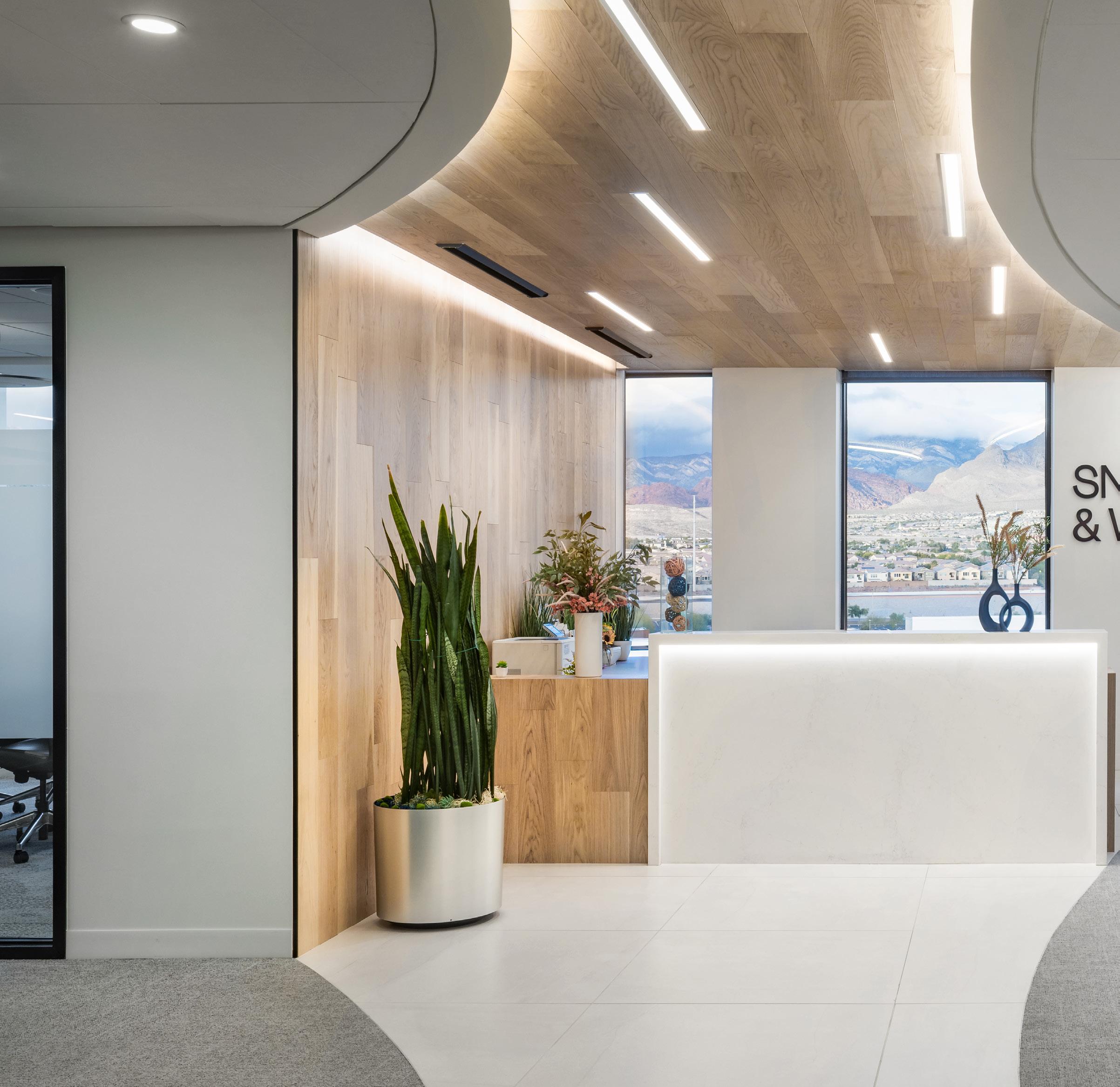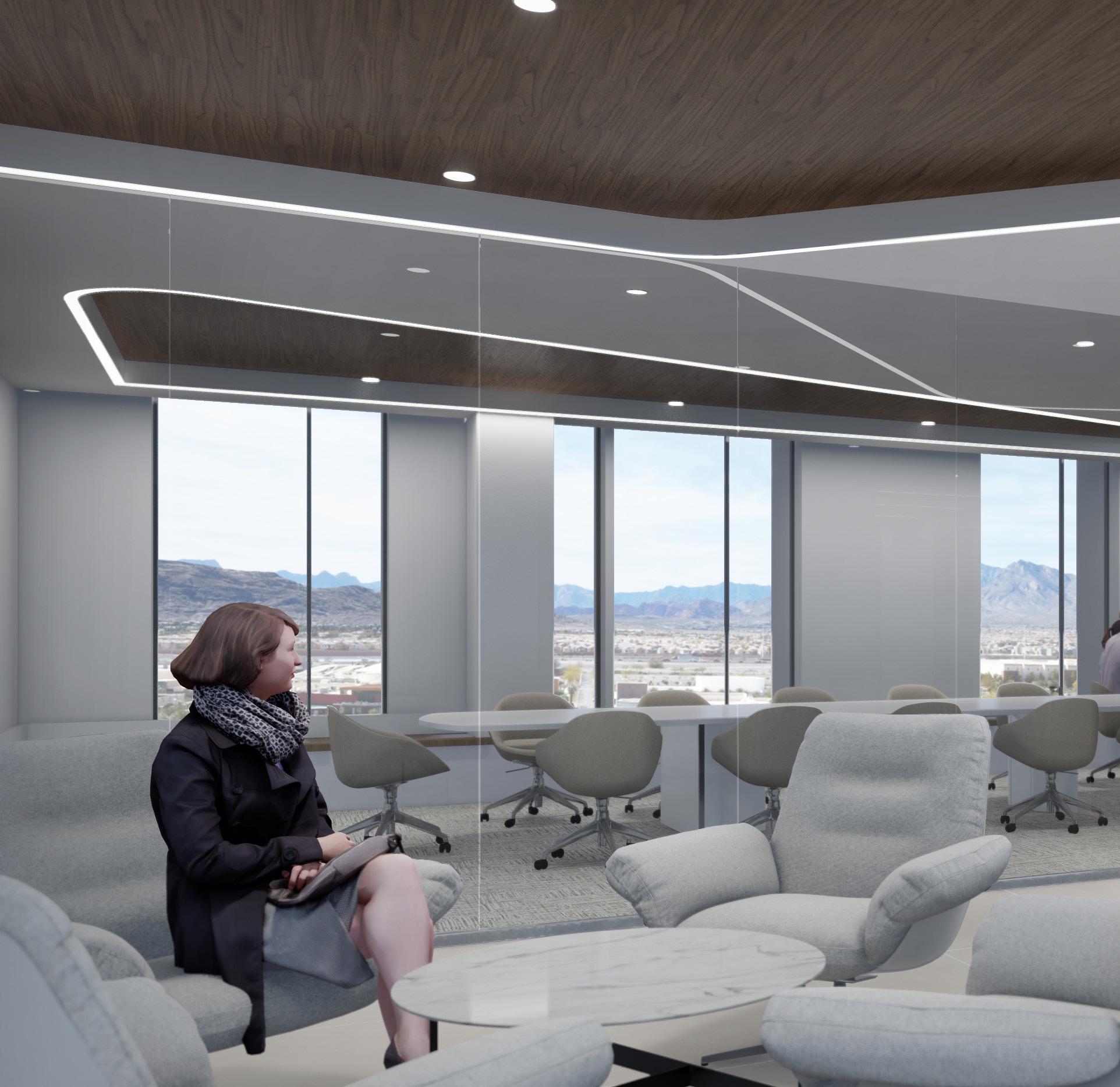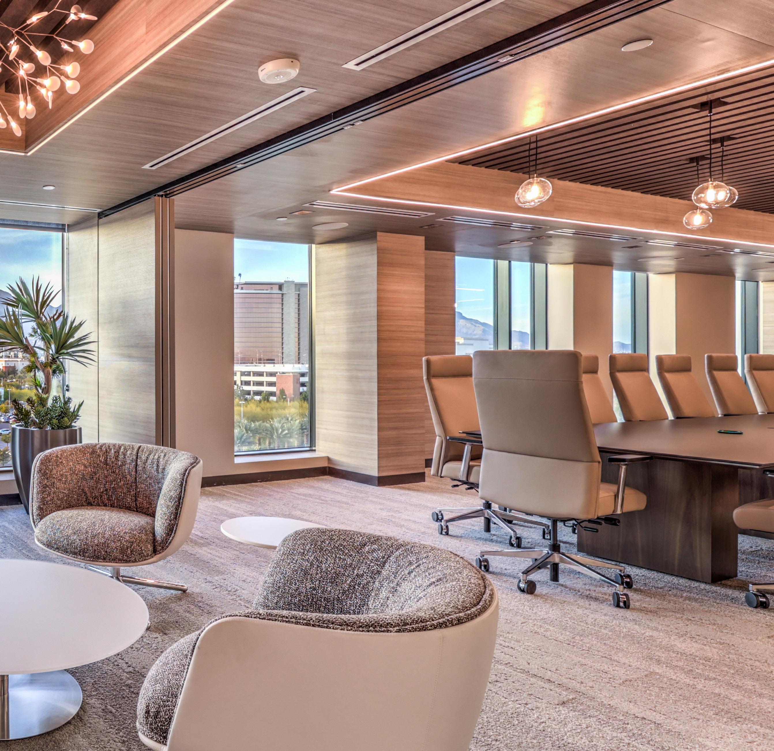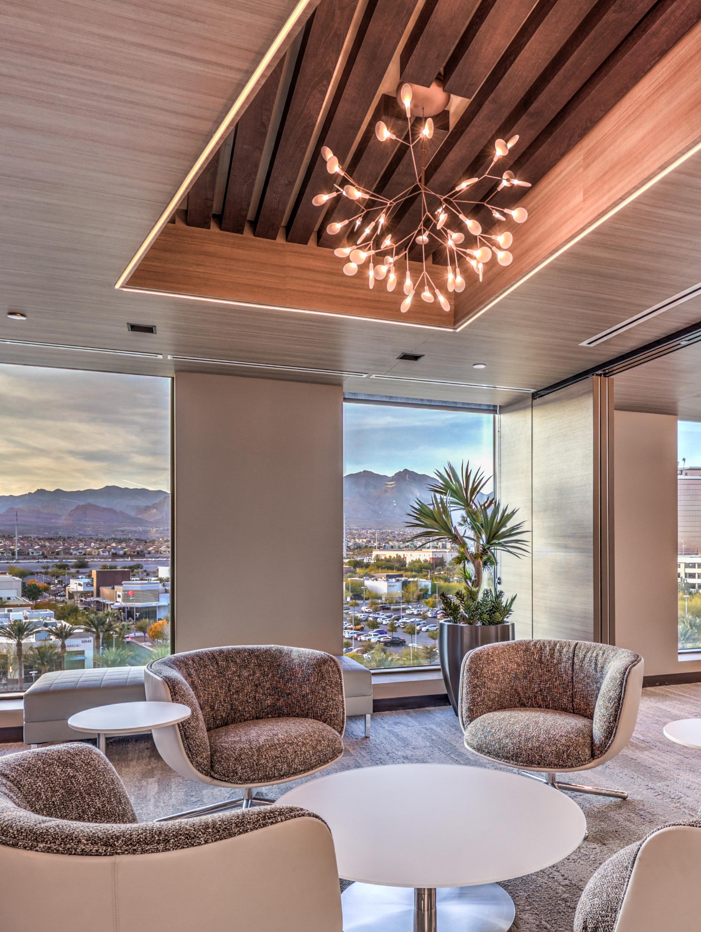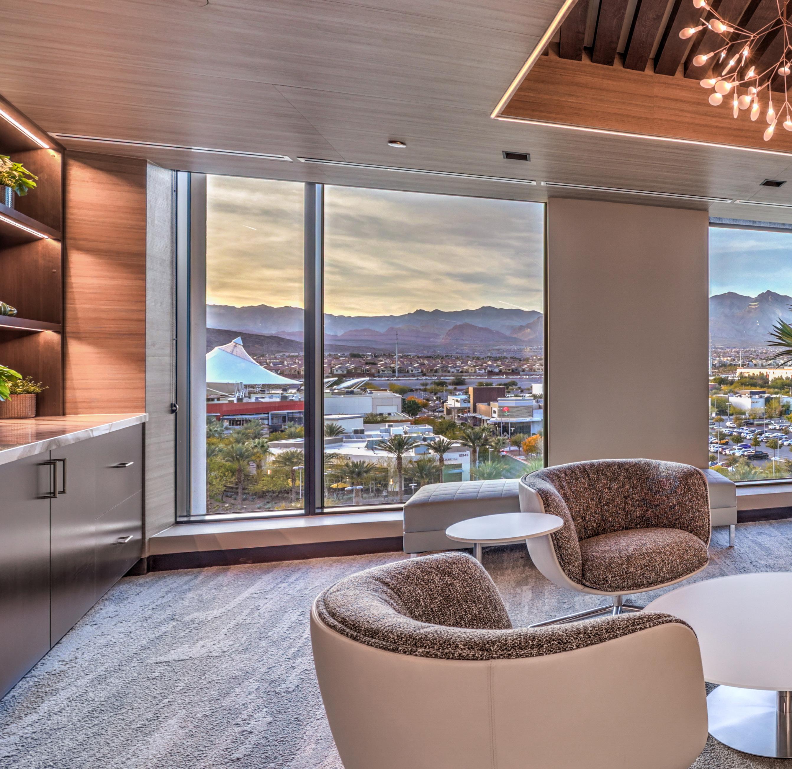 Perched on the sixth floor of the 1700 Pavilion tower in Downtown Summerlin, Security National’s newly completed office exemplifies a design ethos rooted in quiet sophistication and enduring elegance. The space leverages expansive glazing to frame sweeping vistas of the Las Vegas Valley, establishing an immediate sense of openness and connection to the urban landscape.