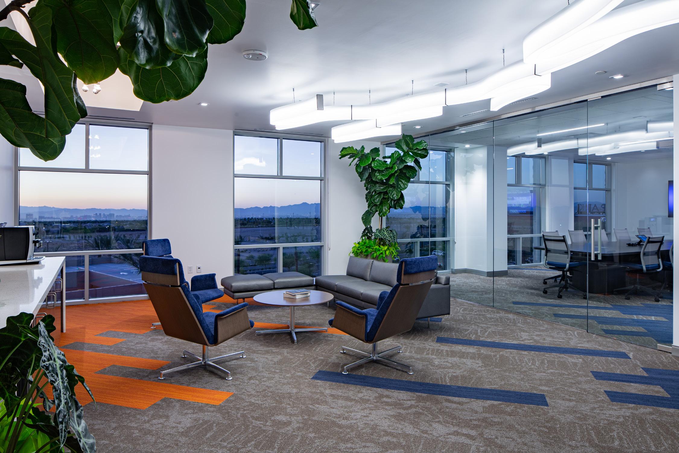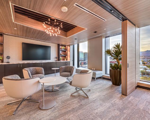 Occupying a prominent suite within the Two Summerlin tower in Downtown Summerlin, this tenant improvement project supports a growing gaming technology firm with a hybrid workplace that deftly balances precision, creativity, and collaboration. Designed to accommodate 35 professionals, the 9,000-square-foot workplace integrates showroom, office, and production functions within a unified environment that reflects the company’s forward-thinking ethos.