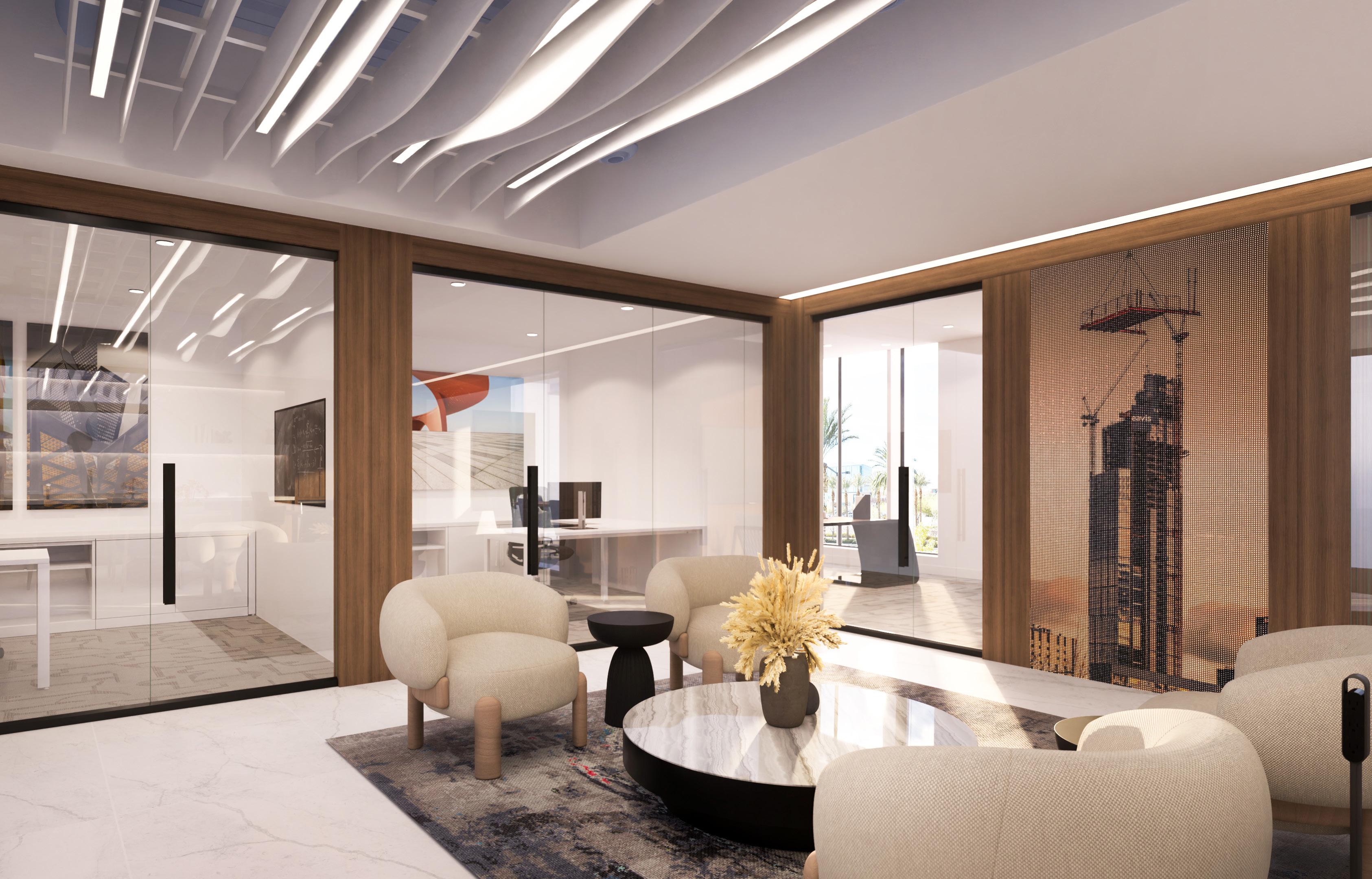 Most recently, EV&A delivered a significant milestone: the complete build-out of IMC’s corporate headquarters on the 16th floor of Building B. This workplace redefines the executive environment, featuring a raised-access floor system for modularity and workplace agility, while channeling a spirit of playfulness and creative energy. Designed to reflect IMC’s vibrant culture and operational complexity, the space serves as both a command center and a cultural hub—further cementing EV&A’s legacy as an integral partner in shaping the physical and experiential identity of the IMC brand.