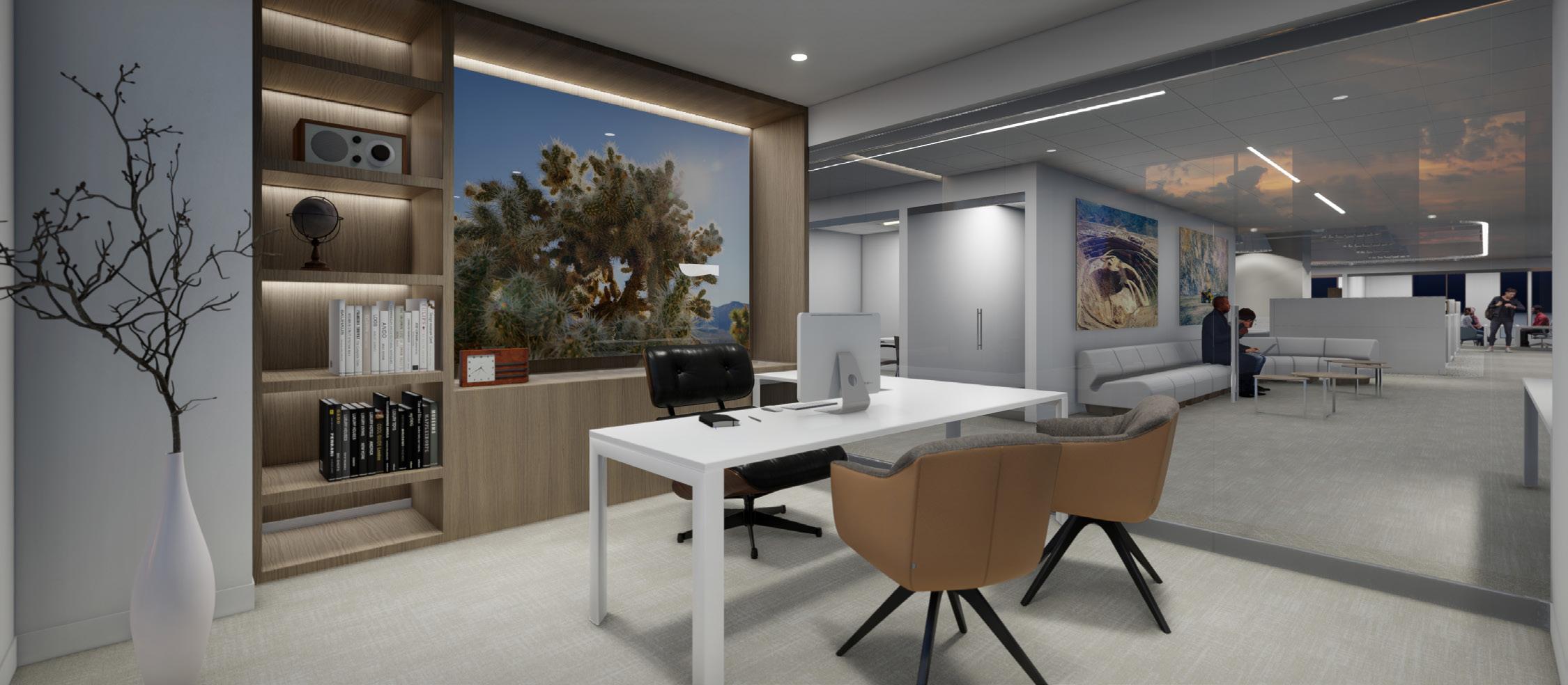 Charged with translating a bold corporate vision into a physical space, EV&A Architects responded with a vibrant, future-forward workplace that merges brand storytelling with design innovation. The client— led by a CEO intent on energizing company culture—sought a luminous, contemporary environment that would reflect the dynamism of their industry while cultivating a sense of inspiration and agility among staff.