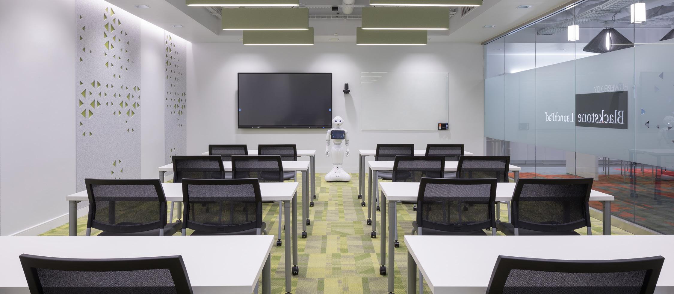 Spanning 4,600 square feet, the programmatic layout supports a range of activities that nurture earlystage ventures, from ideation to execution. Configured with a deliberate mix of open collaboration zones, enclosed offices, multipurpose meeting rooms, and a flexible training space, the Incubator facilitates cross-disciplinary engagement while accommodating the varied needs of student founders, mentors, and university partners.