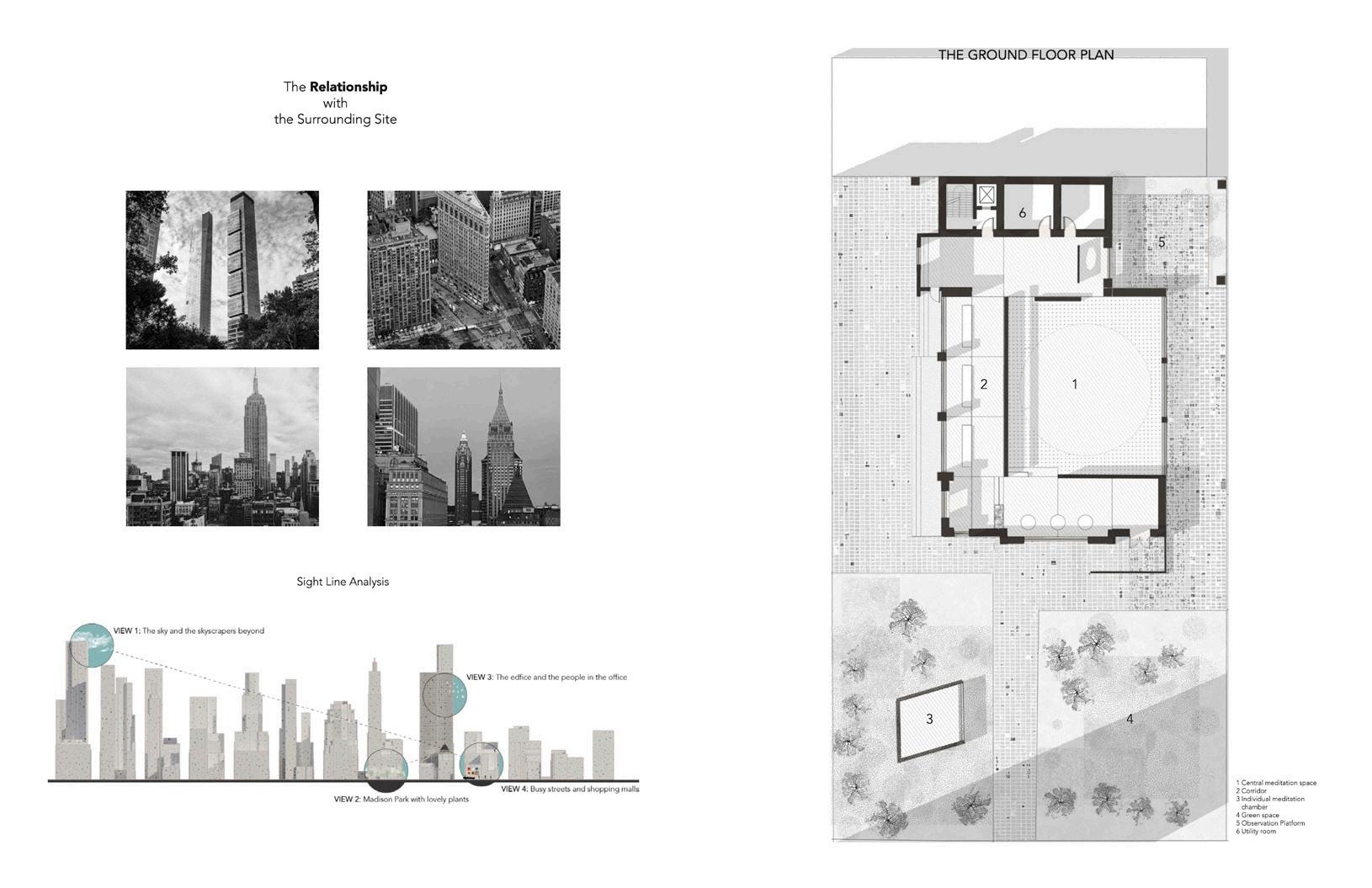 Design considerations that actively support and nurture the practice of mindfulness by integrating natural elements and creating a multisensory experience that calms the mind and soul, harmoniously blend the serenity of meditation spaces with the dynamic energy of the urban environment.