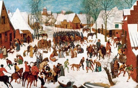 UNDER DEN ROMERSKE okkupasjon kommer Jesus Messias. Store styrker blir sendt mot Betlehem, og ordren er at alle guttebarn, de som var to år eller yngre, skulle drepes (Matt 2,16). Soldater rykker inn i byen. Bygdene rundt Betlehem blir heller ikke spart. Her går en fra hus til hus og leter etter små guttebarn som rives løs fra fortvilte foreldre.
