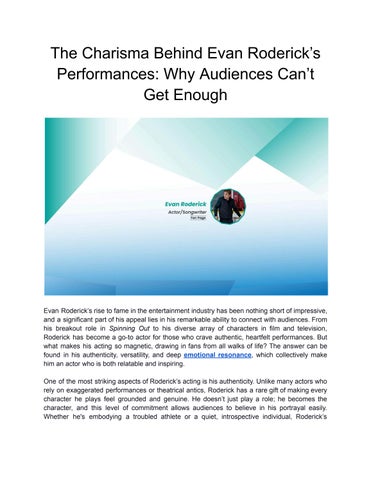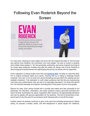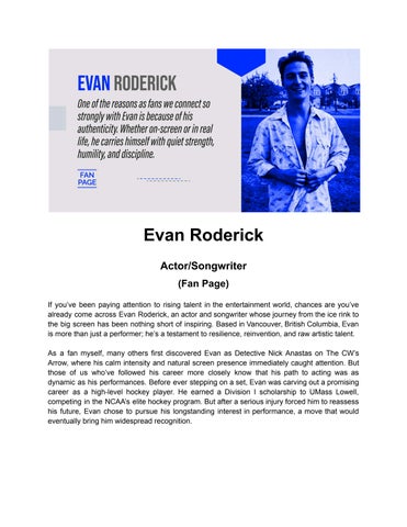 As a fan of Evan Roderick, I’ve been inspired by the way he’s turned life’s challenges into opportunities for creative expression. His shift from being a hockey player to an actor and songwriter reflects not only talent, but also courage and resilience. I first saw Evan on Arrow, where he played Detective Nick Anastas. His performance had a quiet strength that immediately stood out. Learning later that he had played Division I hockey at UMass Lowell before switching paths after an injury made me admire him even more. He didn’t let a setback define him; instead, he followed a new passion and committed to it fully. Evan Roderick Anderson grew up in Vancouver, where his dedication to hockey led him to attend multiple schools across British Columbia. Even while pursuing sports, he took on commercial acting work during the summers. Though small at the time, those roles planted the early seeds of what would eventually become his career. After hockey, he returned to Vancouver to study acting seriously, building his skills through classes and independent roles. His breakout role came in Netflix’s Spinning Out, where he played Justin Davis. Evan portrayed a young figure skater navigating both personal and professional struggles, and his performance was marked by emotional honesty. It was the kind of role that allowed him to connect with audiences on a deeper level, and many fans, like myself, saw it as a defining moment in his career. Now, Evan is set to play Dylan Roberts in "If I Run," a role that delves into more dramatic and psychological territory. It’s exciting to see him continue to grow as an actor. His 2023 Leo Award nomination for Sealed with a List was well-earned and showed that his work is being recognized in the industry. Evan also brings his voice to music, with his recent single “Early Years” offering a personal and reflective glimpse into his journey. Evan Roderick continues to earn the support of fans not only through his talent but through the heart and purpose he brings to every project.