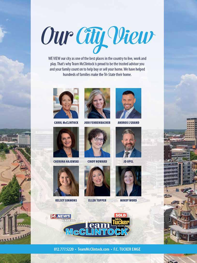 4 EVANSVILLE LIVING CITY VIEW 2023 Tucker Publishing Group 25 N.W. Riverside Drive, Ste. 200, Evansville, IN 47708 ph 812-426-2115 • fax 812-426-2134 • evansvilleliving.com