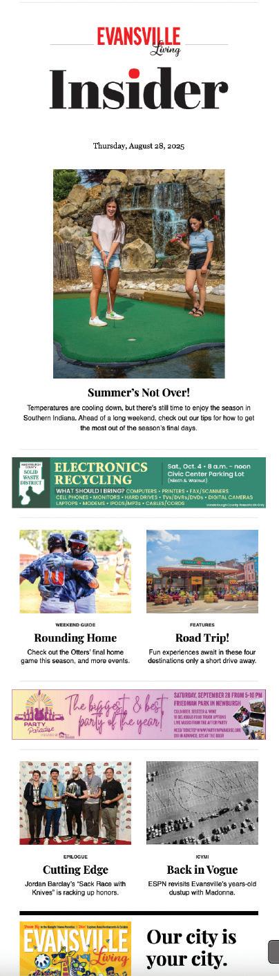 SEND YOUR NOTES TO LETTERS@EVANSVILLELIVING.COM