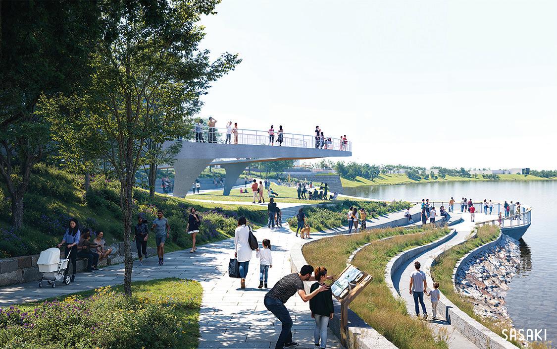 Questions of when and where construction could begin depend on the schematic design, Sasaki officials say. “Ideally, improvements along Riverside Drive and in Dress Plaza would move forward together, creating an early and visible impact,” Wethington says.