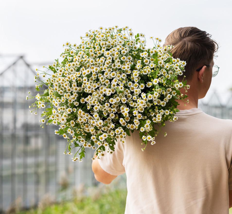 Our breeding program for this crop strongly focuses on uniformity of both stems and flower heads. The result is a rich-flowering product with abundant, small blooms that make Tanacetum the ideal filler in bouquets adding volume, lightness, and a refined texture. Thanks to our cultivation expertise, we develop varieties that perform reliably under various conditions, enabling year-round production with consistently high quality.