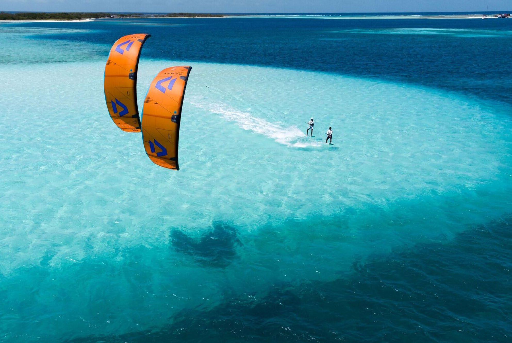 With its white sandy beach, a turquoise lagoon, and crystal-clear waters the lagoon is the perfect playground for freestyle, speed racing, and wave riding