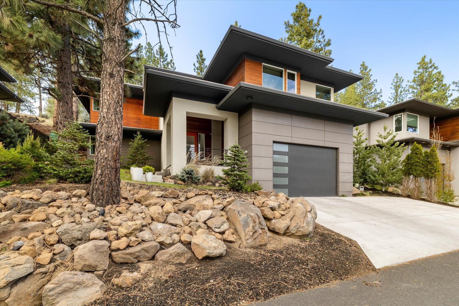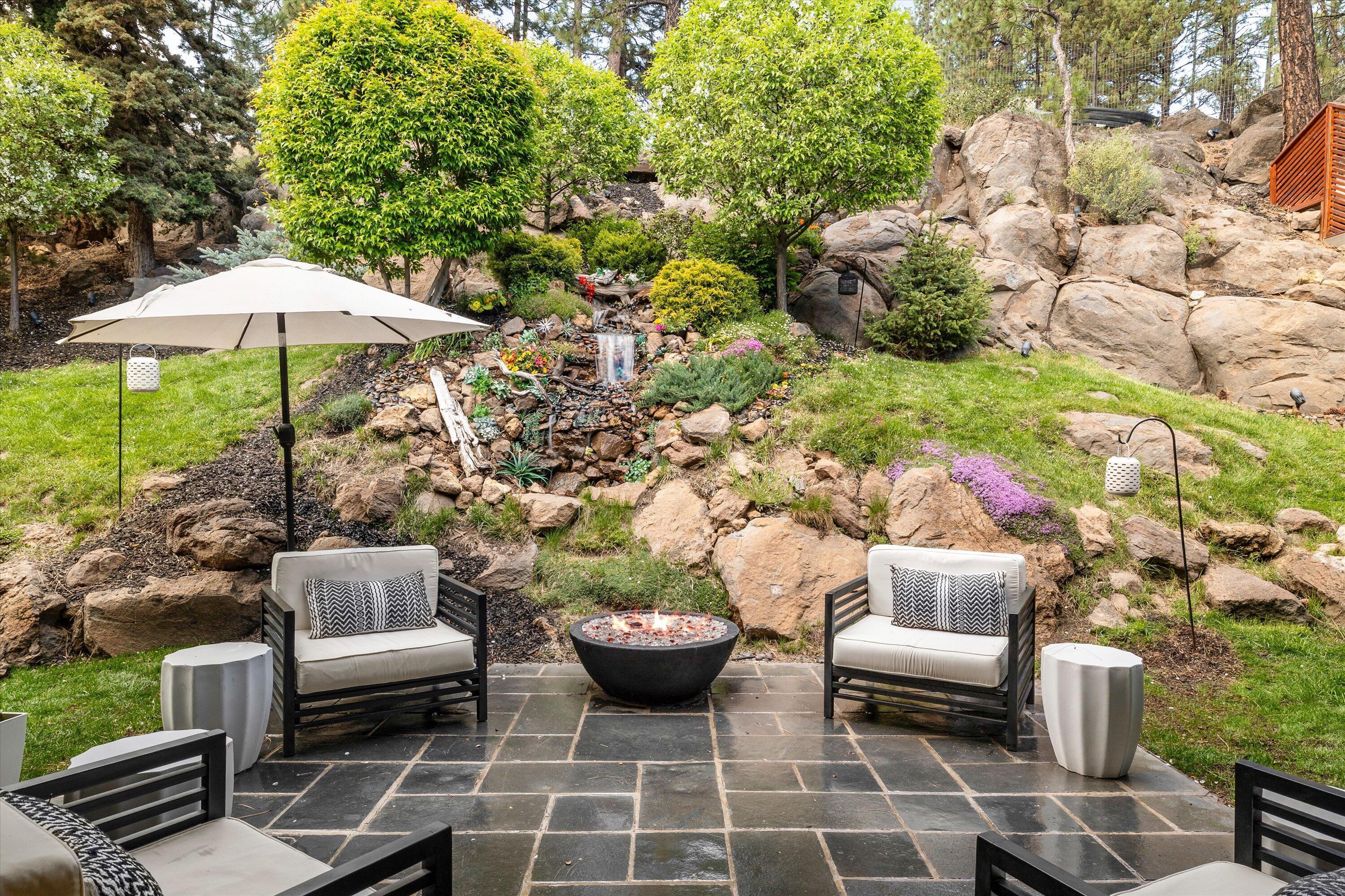 The main level showcases a stunning great room overlooking a completely private, beautifully landscaped backyard anchored by a tranquil water feature The thoughtfully designed floor plan includes a luxurious primary suite, two guest bedrooms, a dedicated office, and an intimate media area, all intentionally arranged to offer comfort, functionality, and refined separation of space. The lower level features a well-appointed gym with sauna, along with generous storage A spacious two-car garage and additional parking complete this exceptional offering, delivering effortless convenience to complement an elevated Central Oregon lifestyle