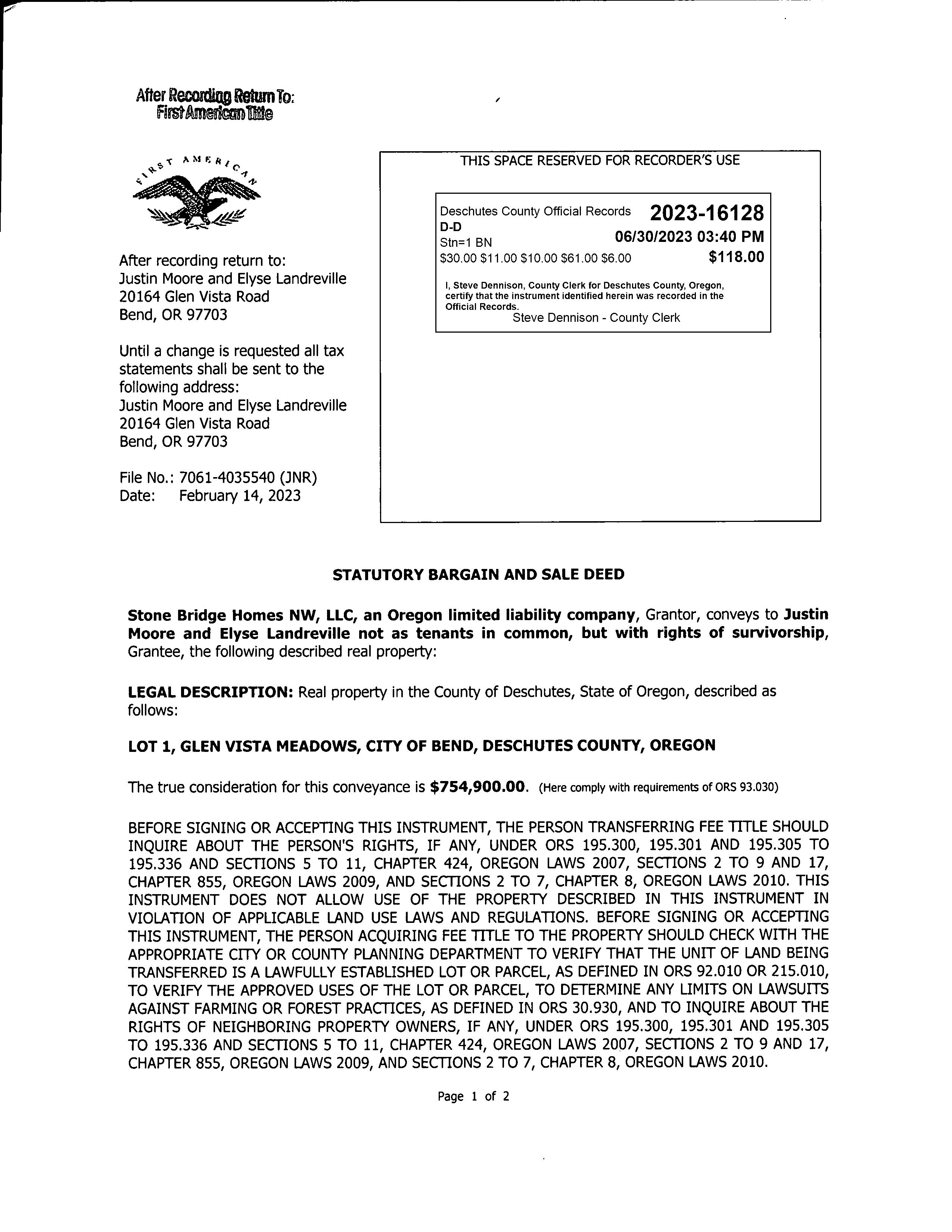 Review of digital records maintained by the Deschutes County Assessor’s Office, Tax Office, Finance Office, and the Community Development Department indicates that there are no special tax, assessment or property development related notations associated with this account. However, independent verification of the presence of other Deschutes County tax, assessment, development, and additional property related considerations is recommended. Confirmation is commonly provided by title companies, real estate agents, developers, engineering and surveying firms, and other parties who are involved in property transactions or property development. In addition, County departments may be contacted directly to discuss the information.