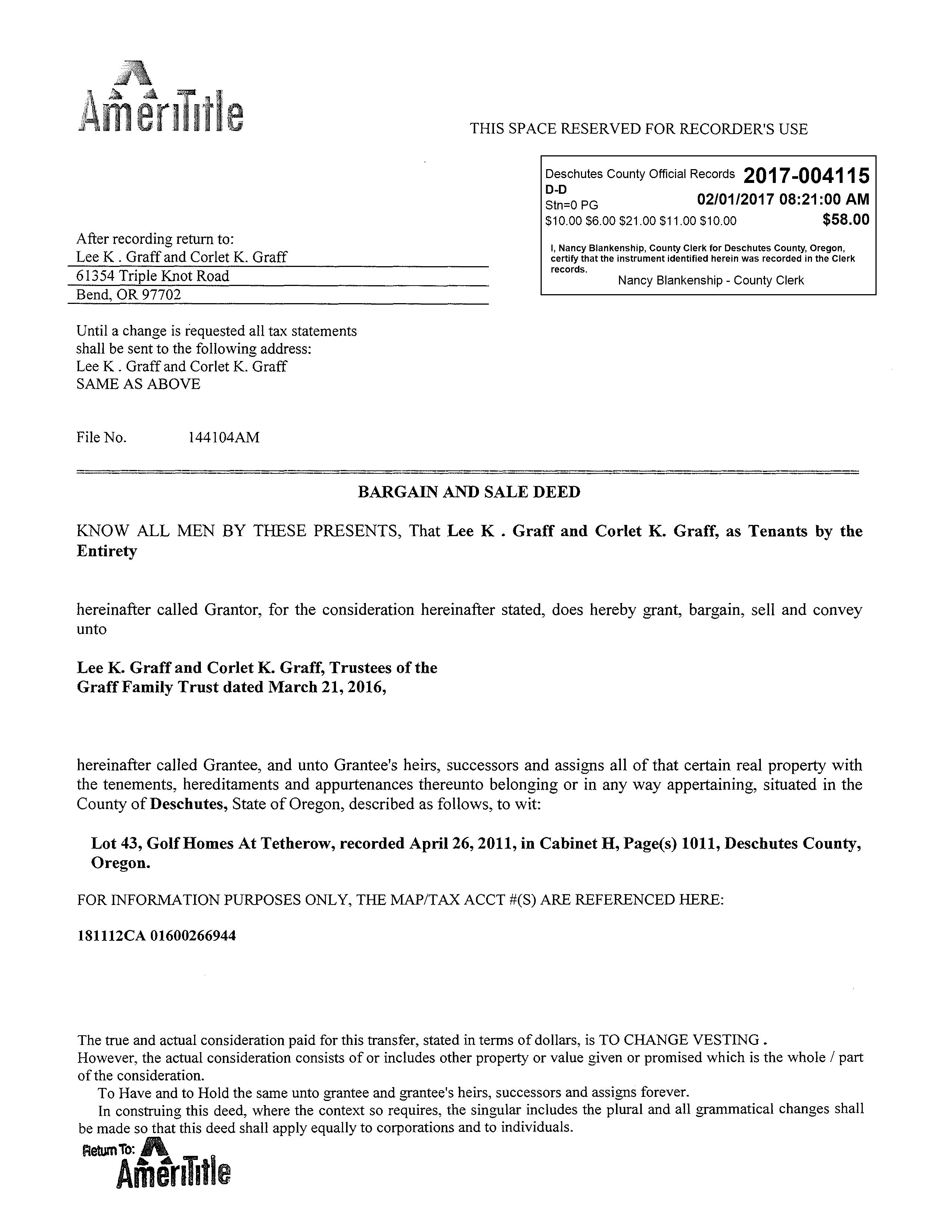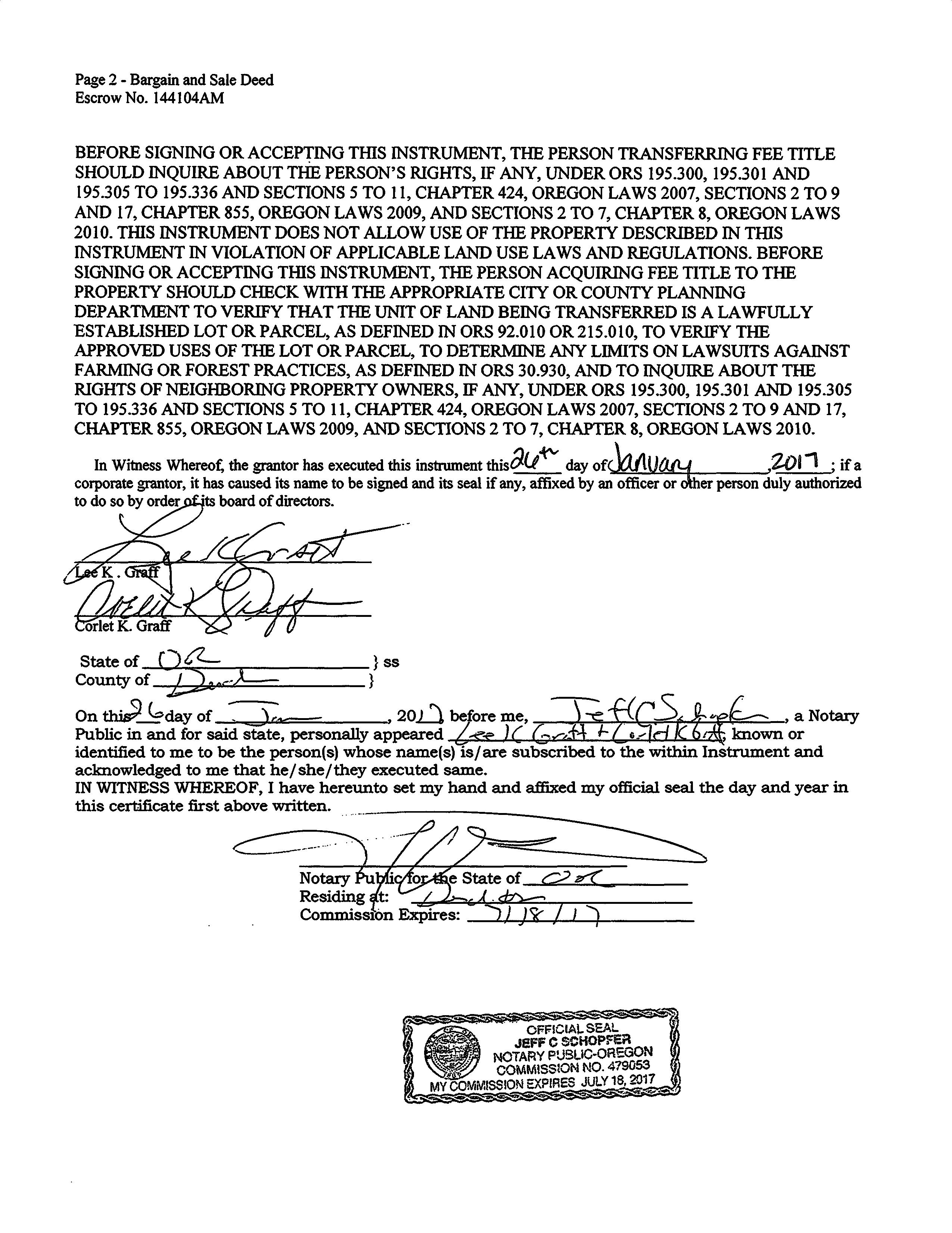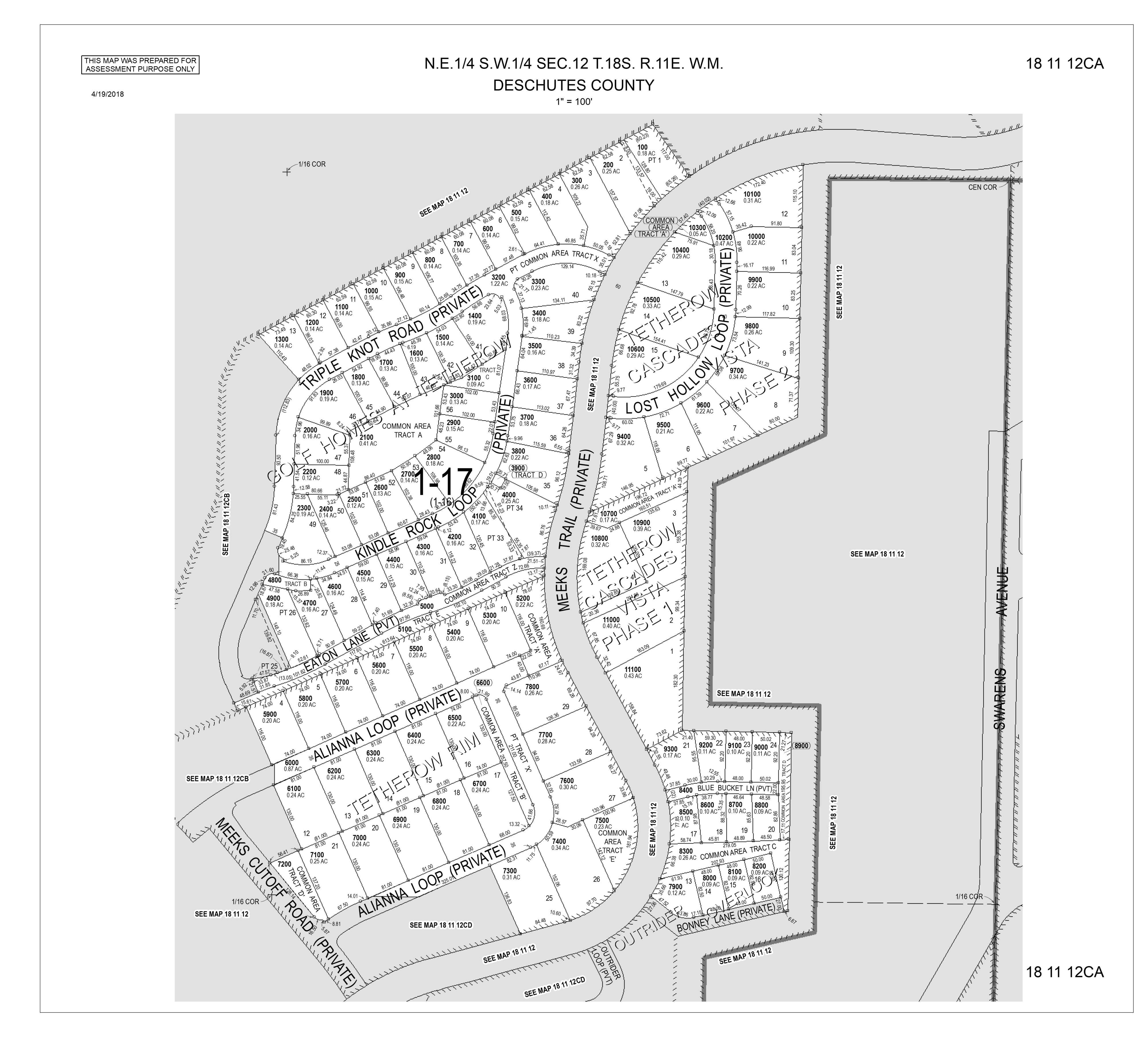Review of digital records maintained by the Deschutes County Assessor’s Office, Tax Office, Finance Office, and the Community Development Department indicates that there are no special tax, assessment or property development related notations associated with this account. However, independent verification of the presence of other Deschutes County tax, assessment, development, and additional property related considerations is recommended. Confirmation is commonly provided by title companies, real estate agents, developers, engineering and surveying firms, and other parties who are involved in property transactions or property development. In addition, County departments may be contacted directly to discuss the information.