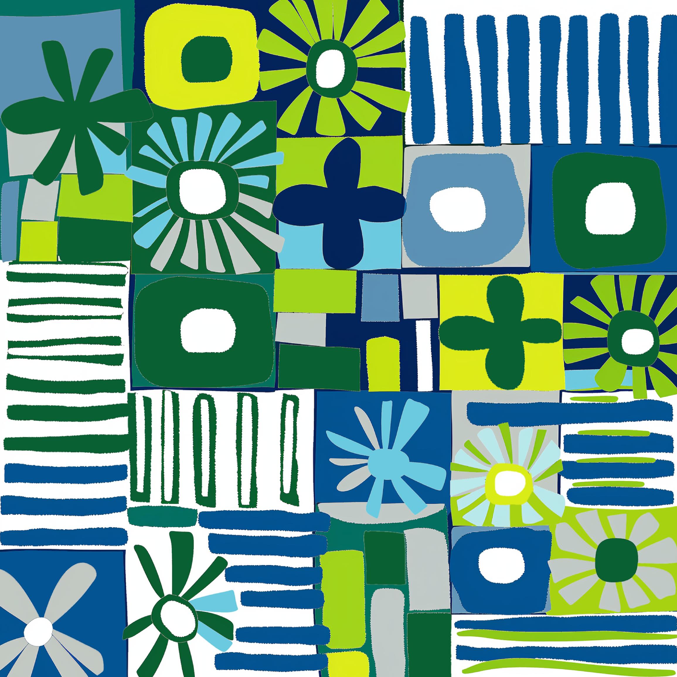 Geometric enhanced Pop Art in bright summer neon palette.