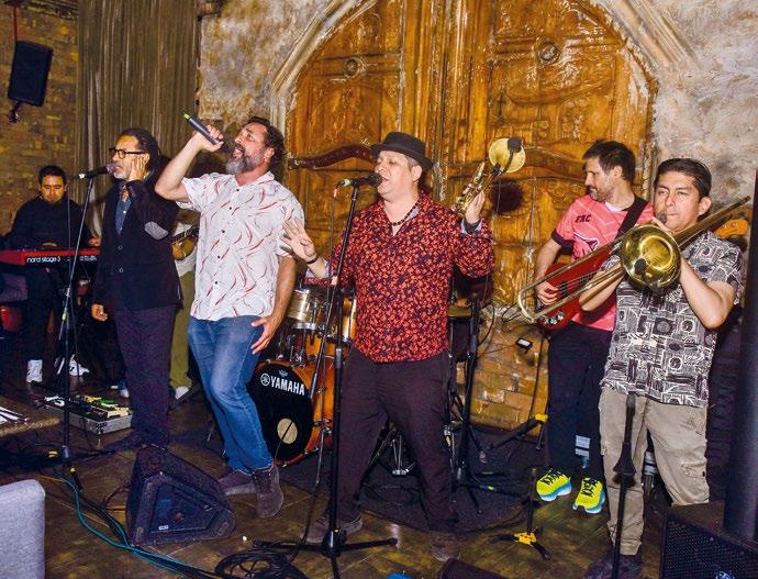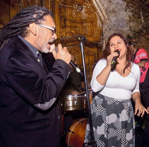 Claudia Manrique cantando con los Fabulosos Primos en la noche de aniversario de la revista.