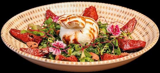 1. Burrata, en cama de portobellos, arúgula y chimichurri de albahaca.