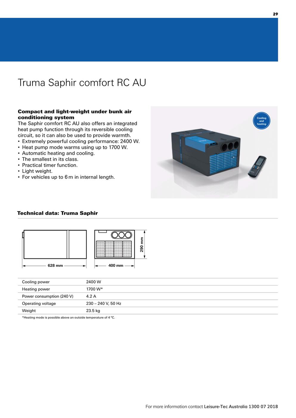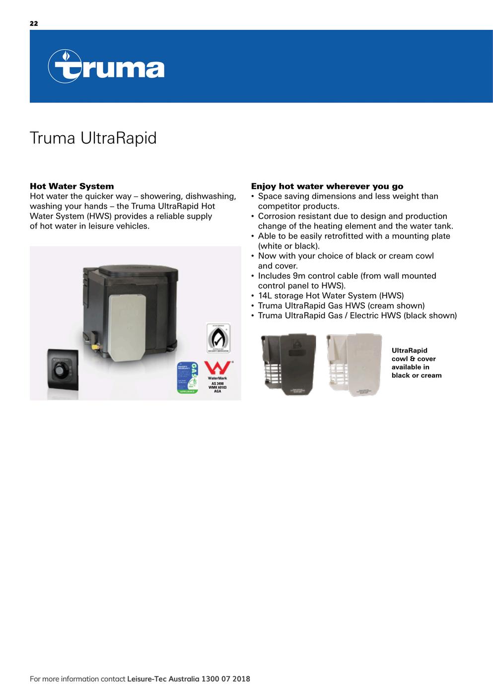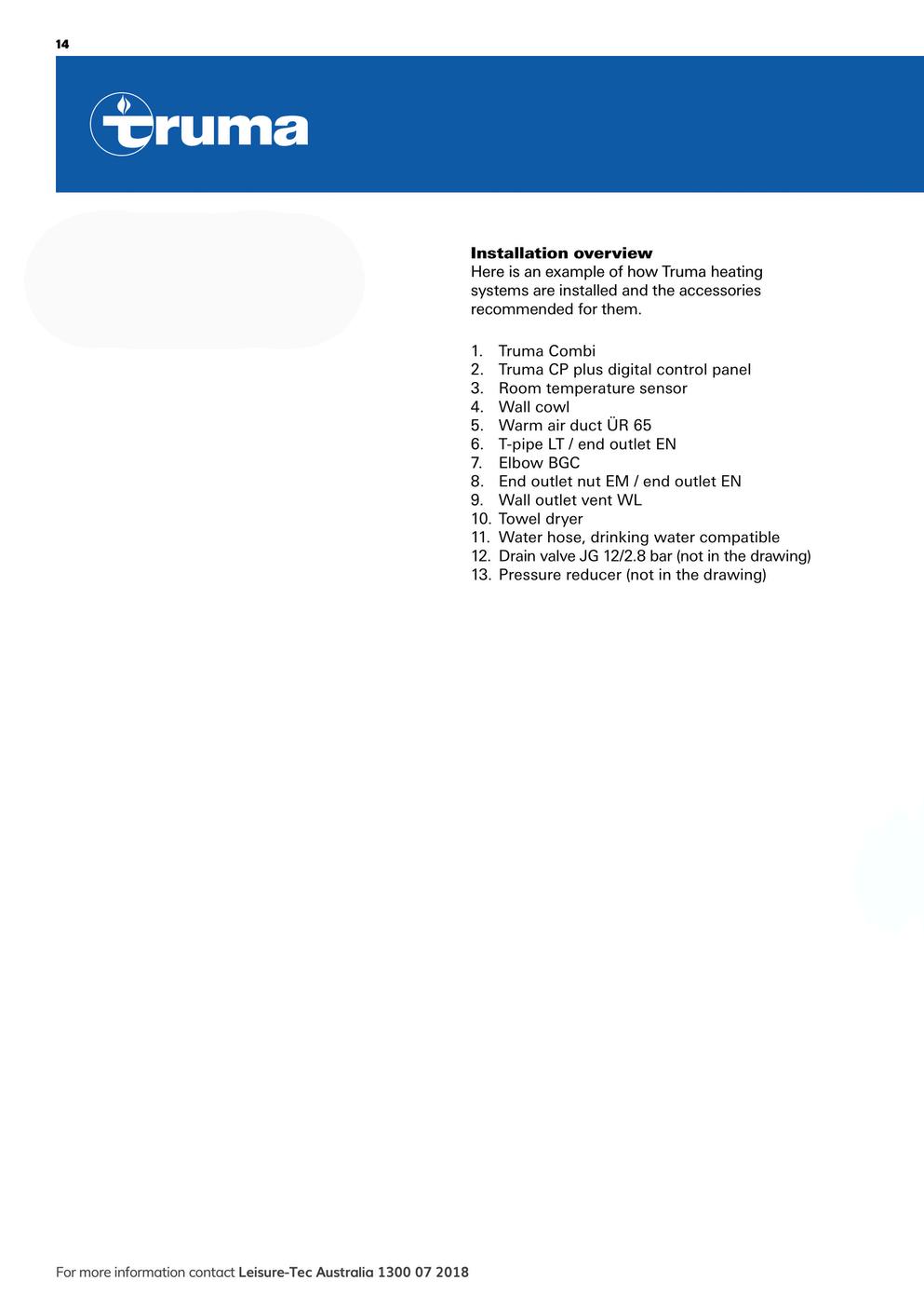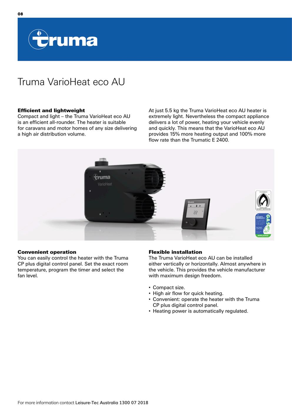 Backed by a dedicated Australian team, Truma provides local technical support, training, and spare parts ensuring fast, knowledgeable service to meet the needs of the Australian market