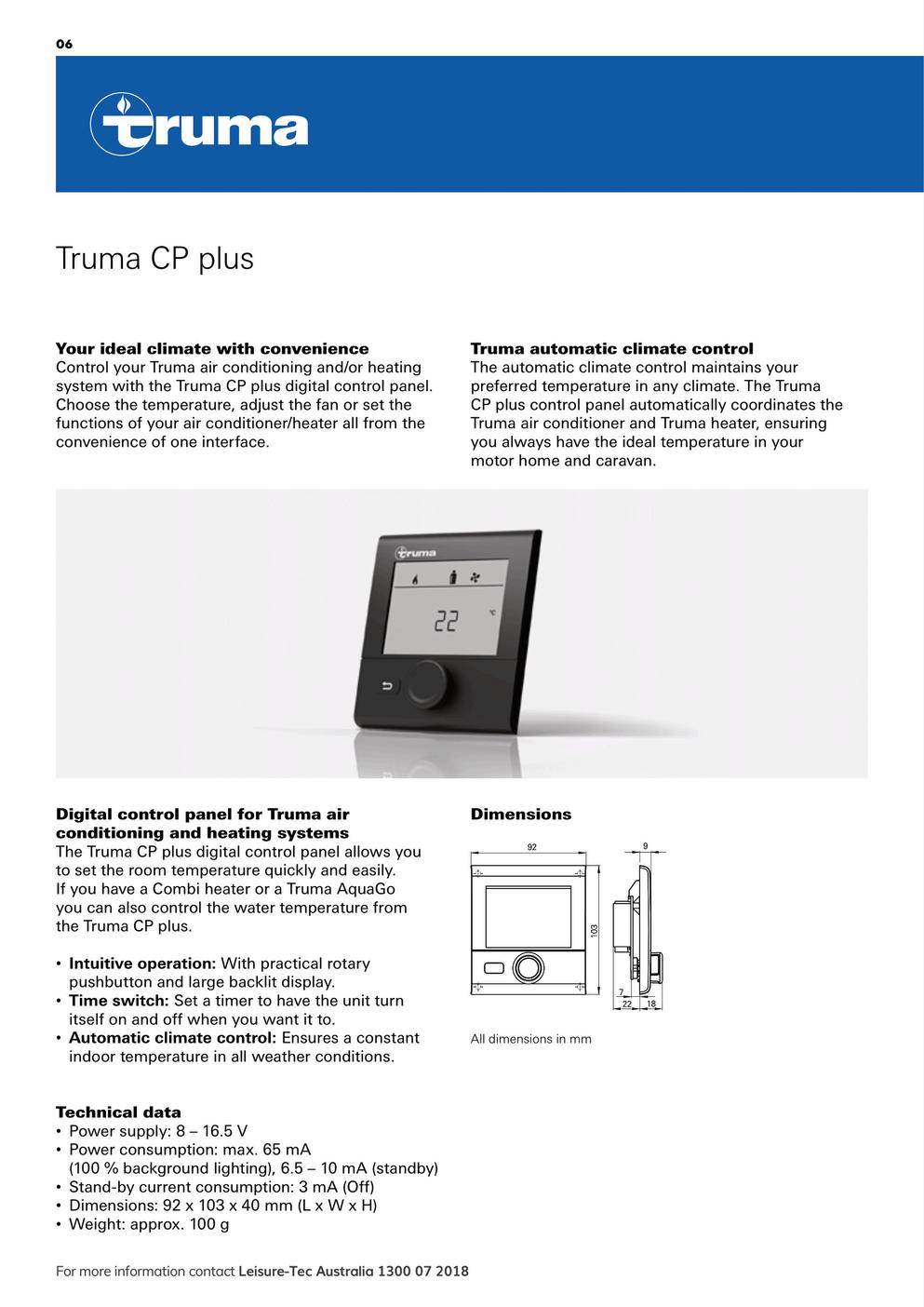 With more than 75 years of innovation and engineering expertise, Truma offers a comprehensive product portfolio in the fields of heating and air-conditioning systems, water systems, as well as gas supplies All systems are designed for seamless integration, long-term performance, and energy efficiency across a wide range of RV configurations
