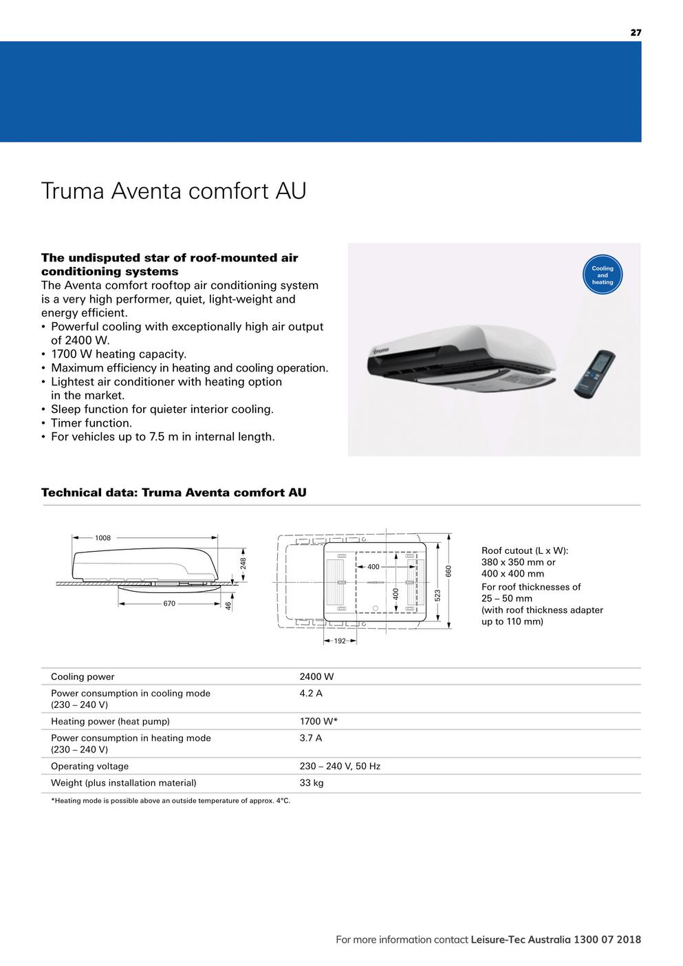 Technical data: Truma Aventa Compact Plus 2nd Gen