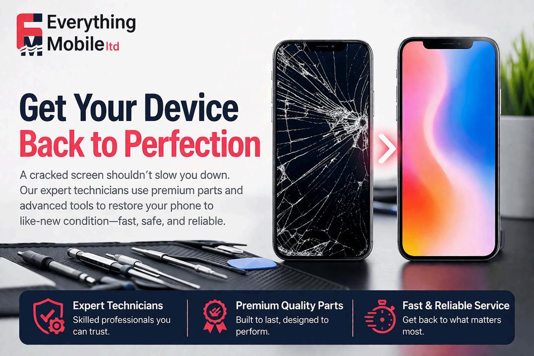 You should not permit a broken screen to destroy your work performance, as it creates a danger through dropping glass pieces. The Everything Mobile Limited team will assist you if you require professional screen replacement services without taking on the risks of DIY work, which you are not prepared to handle.