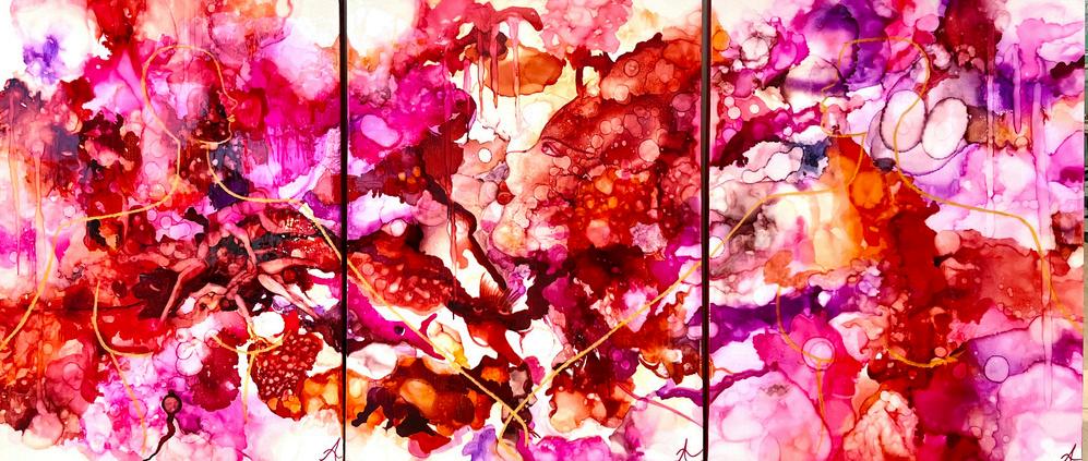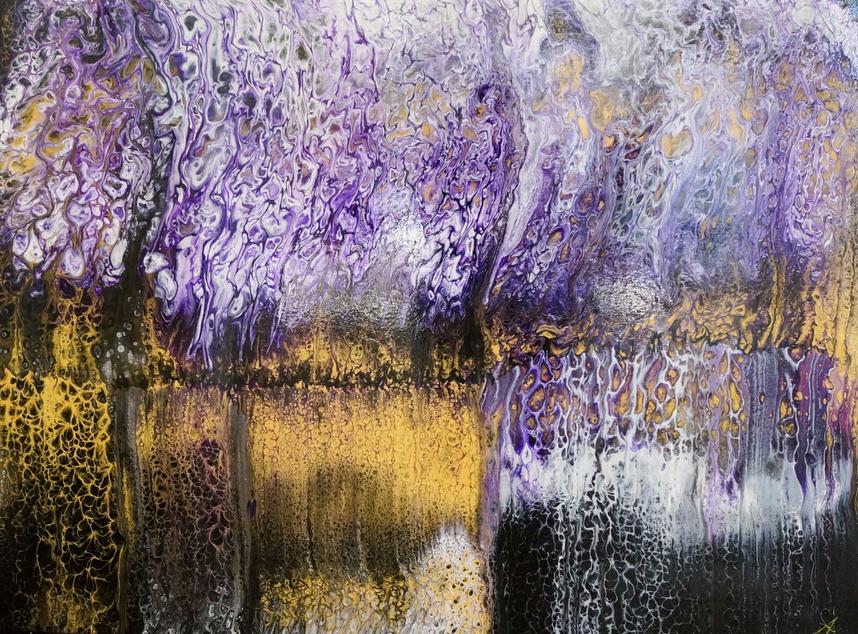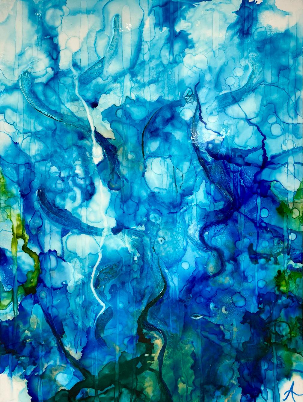 Recently, Alexandra has embraced multimedia fluid techniques, experimenting with alcohol ink and epoxy resin. These scientific methods produce masterfully crafted layered effects that are inherently organic and unpredictable.