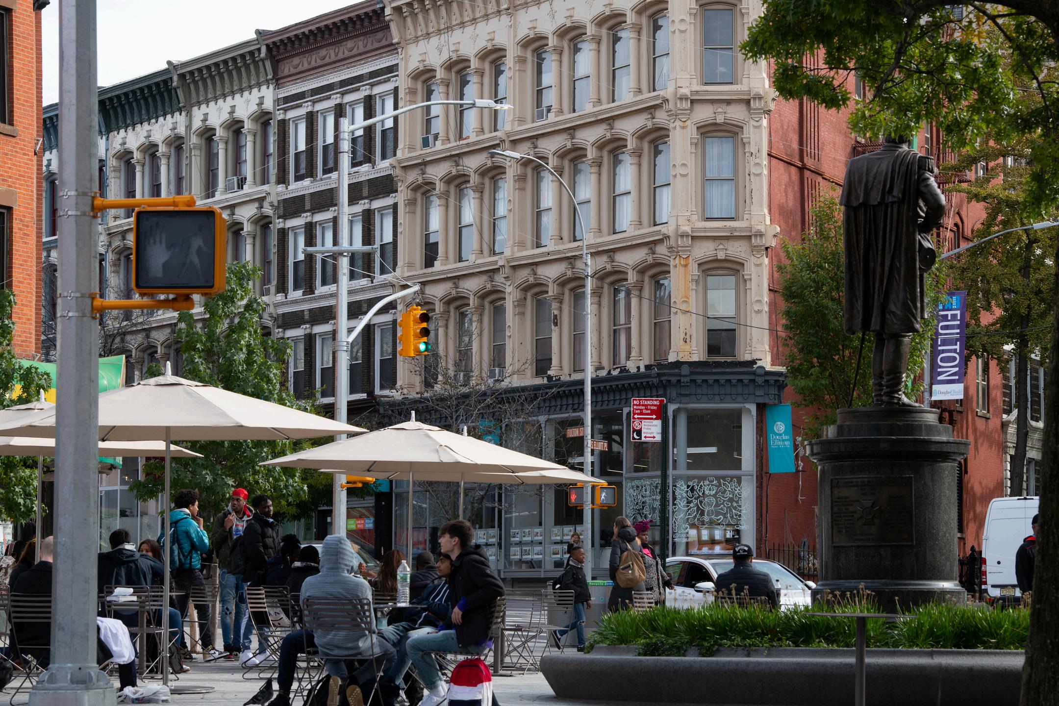 Fort Greene offers a suburban feel with its unique, grandiose architecture, including Colonial, Italianate, and Eastlake styles alongside classic brownstones. The neighborhood's historic name reflects its Revolutionary War roots, while its tree-lined streets and central Fort Greene Park provide a natural, inviting atmosphere for residents
