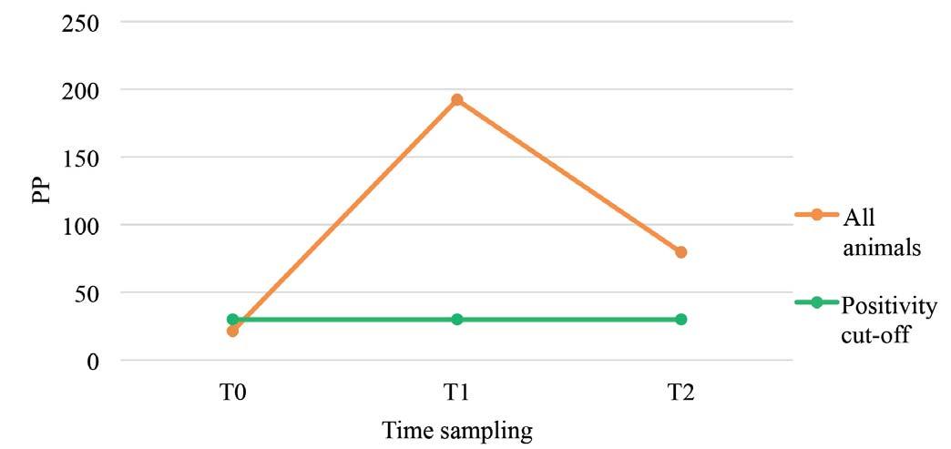 Figure 2 - Average serological Positivity Percentage (PP) trend in animals sampled with positivity cut-off of 30.